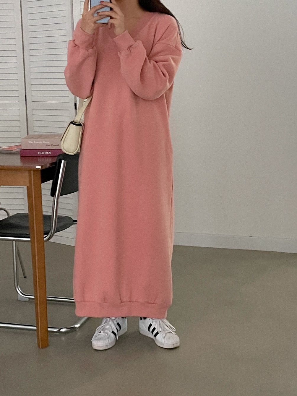 品名:브이양기모롱OPS #맥시롱 #양기모 #쭈리 #롱원피스 ◎※☞颜色:그레이, 블랙, 핑크 ◎※☞尺寸:FREE ◎※☞材质:纯棉 80%,聚酯 20% 翻译