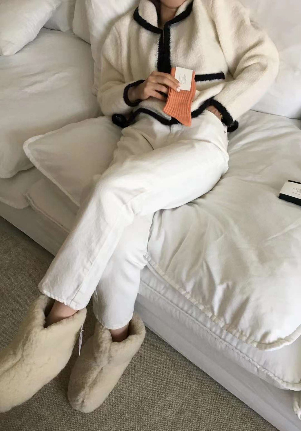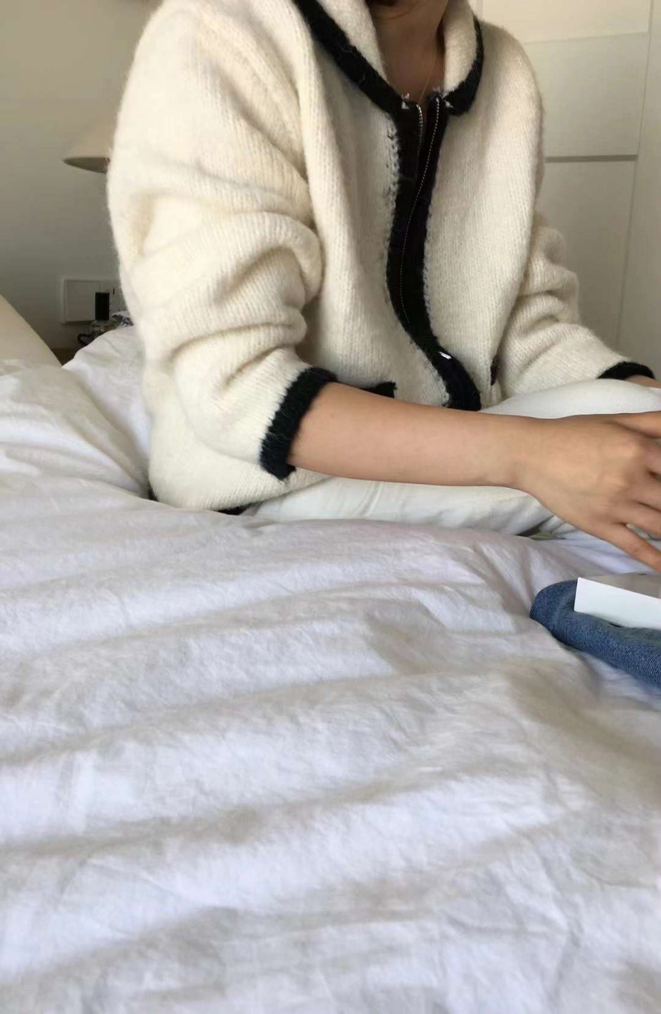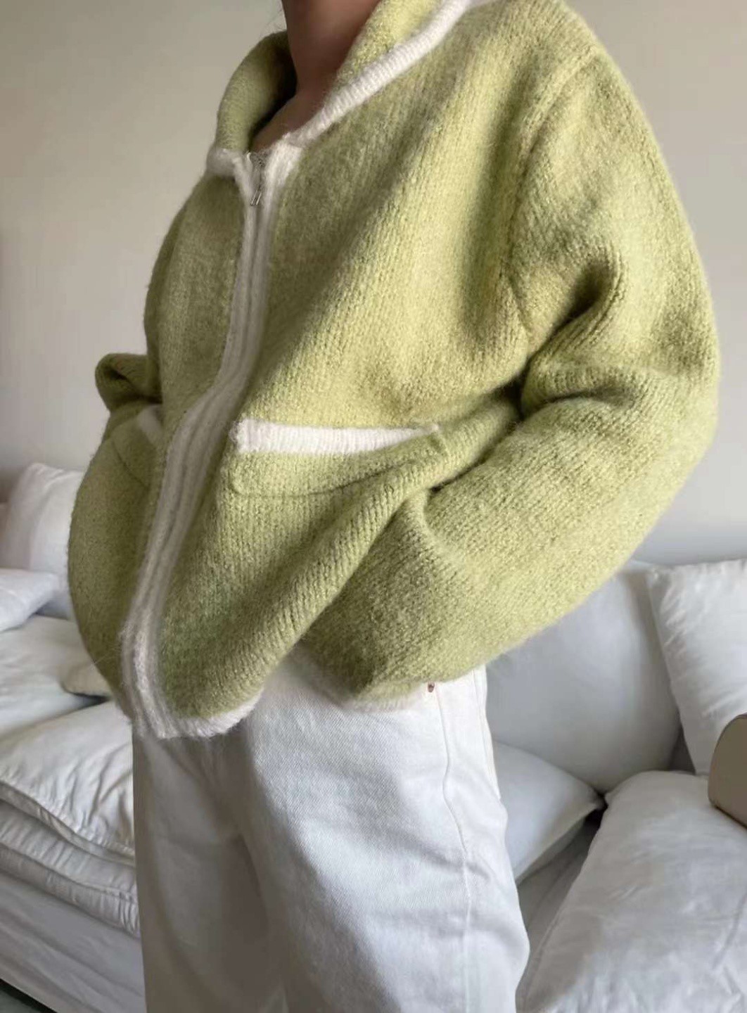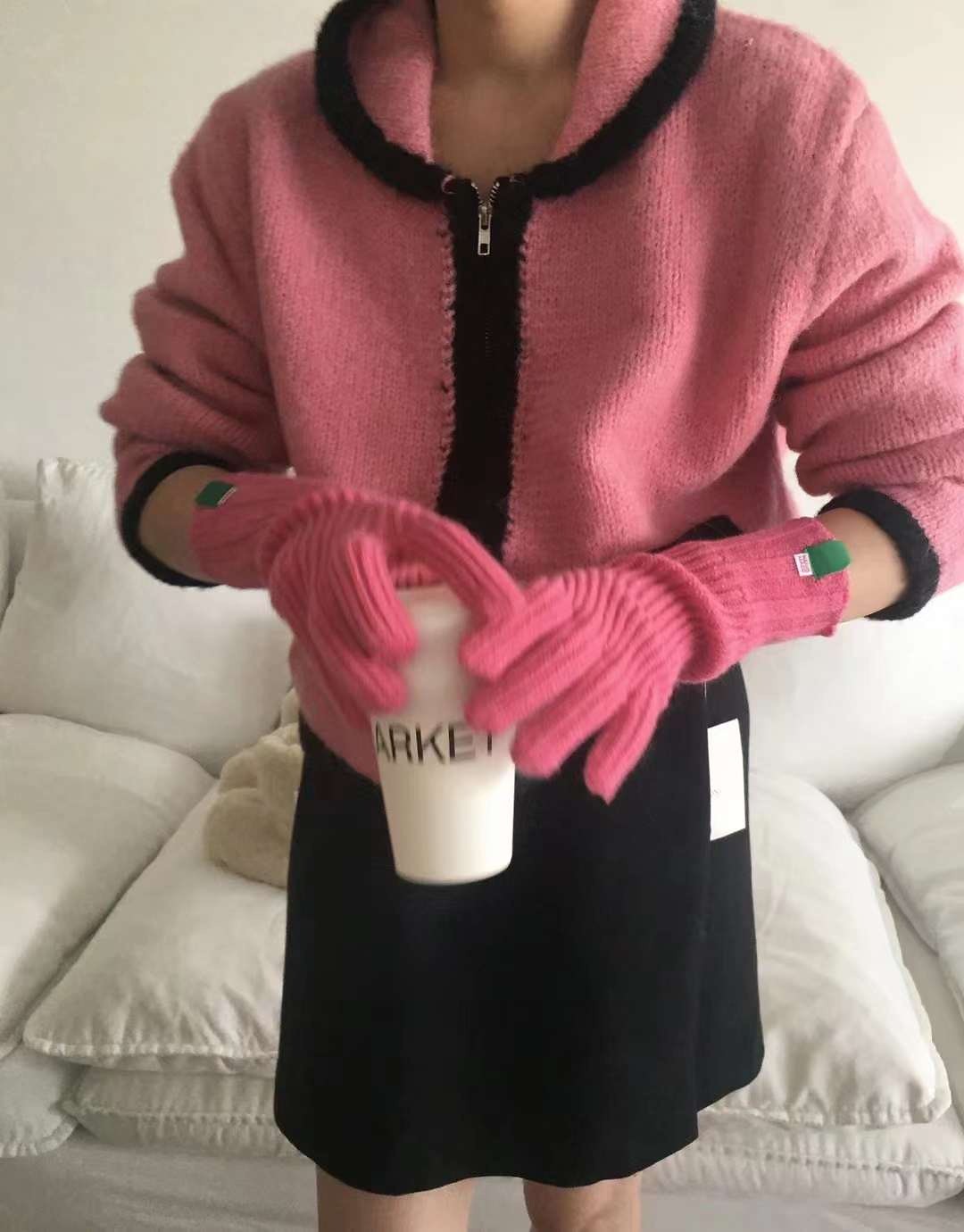 品名:츄파배색집업 ◎※☞颜色:블랙, 아이보리, 연두, 핑크 ◎※☞尺寸:FREE ◎※☞材质:腈纶 100% 翻译