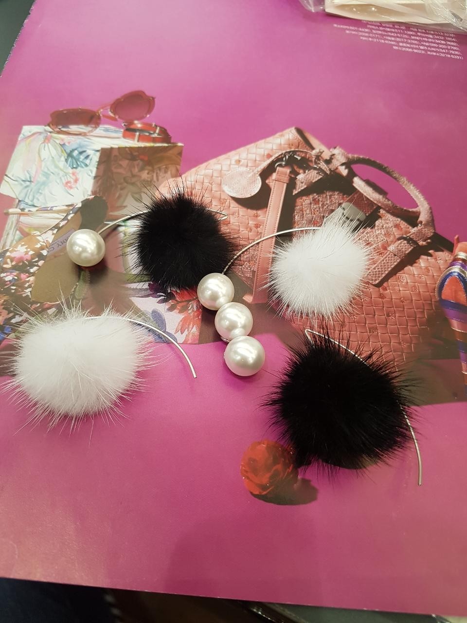 品名:악세사리ㅡ밍크 진주 귀걸이 ◎※☞颜色:블랙, 화이트 ◎※☞尺寸:FREE ◎※☞材质:밍크 0% 翻译