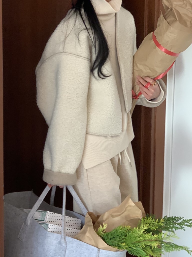 品名:이지덤블자켓 ◎※☞颜色:브라운, 아이보리 ◎※☞尺寸:FREE ◎※☞材质:聚酯 90%,羊毛 10% 翻译