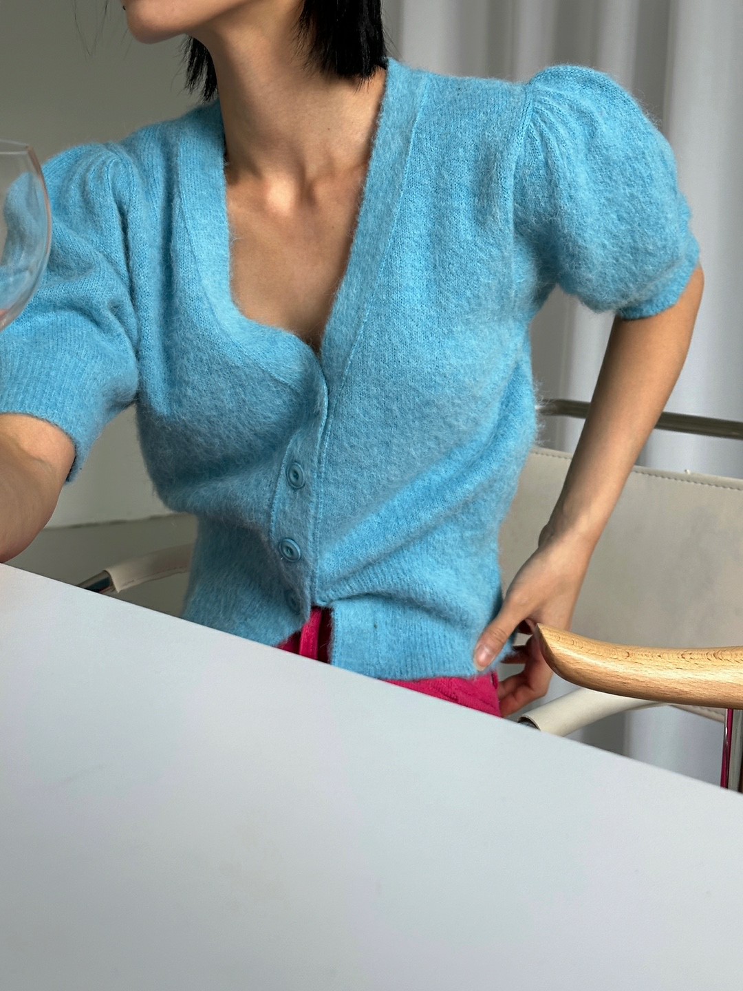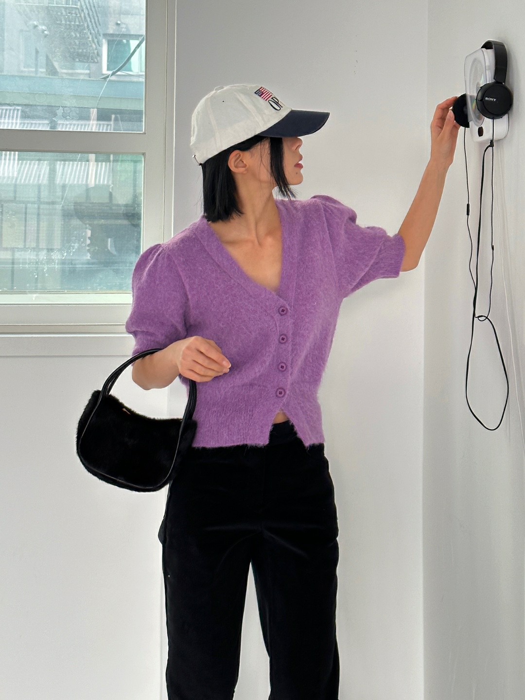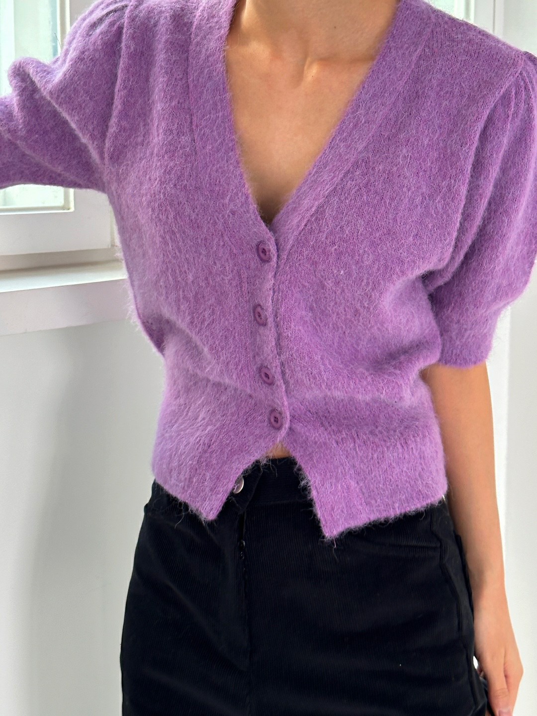 品名:라떼 가디건 ◎※☞颜色:검정, 보라, 블루, 크림 ◎※☞尺寸:FREE ◎※☞材质:尼龙 20%,羊驼毛 20%,羊毛 60% 翻译