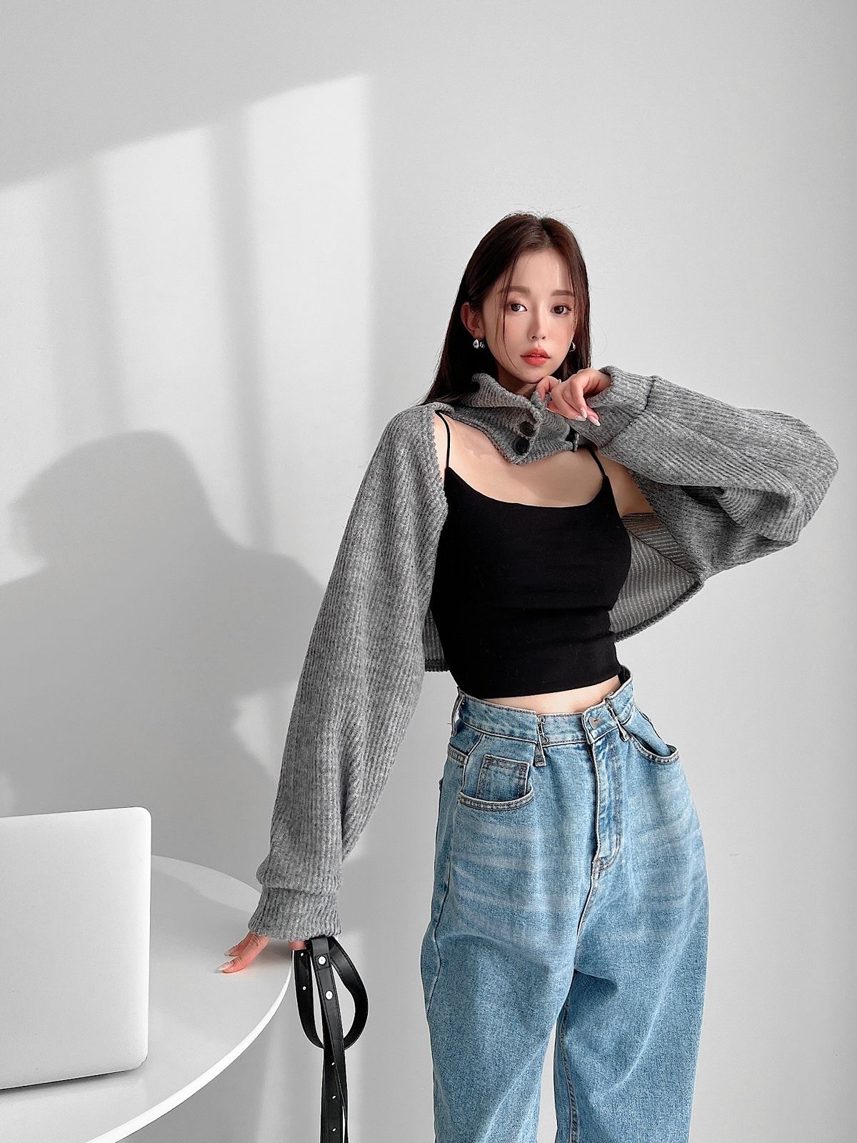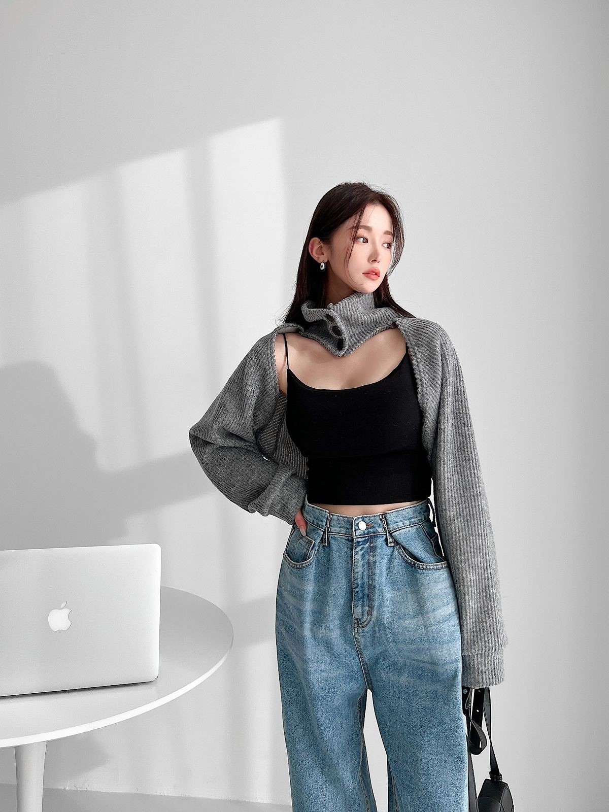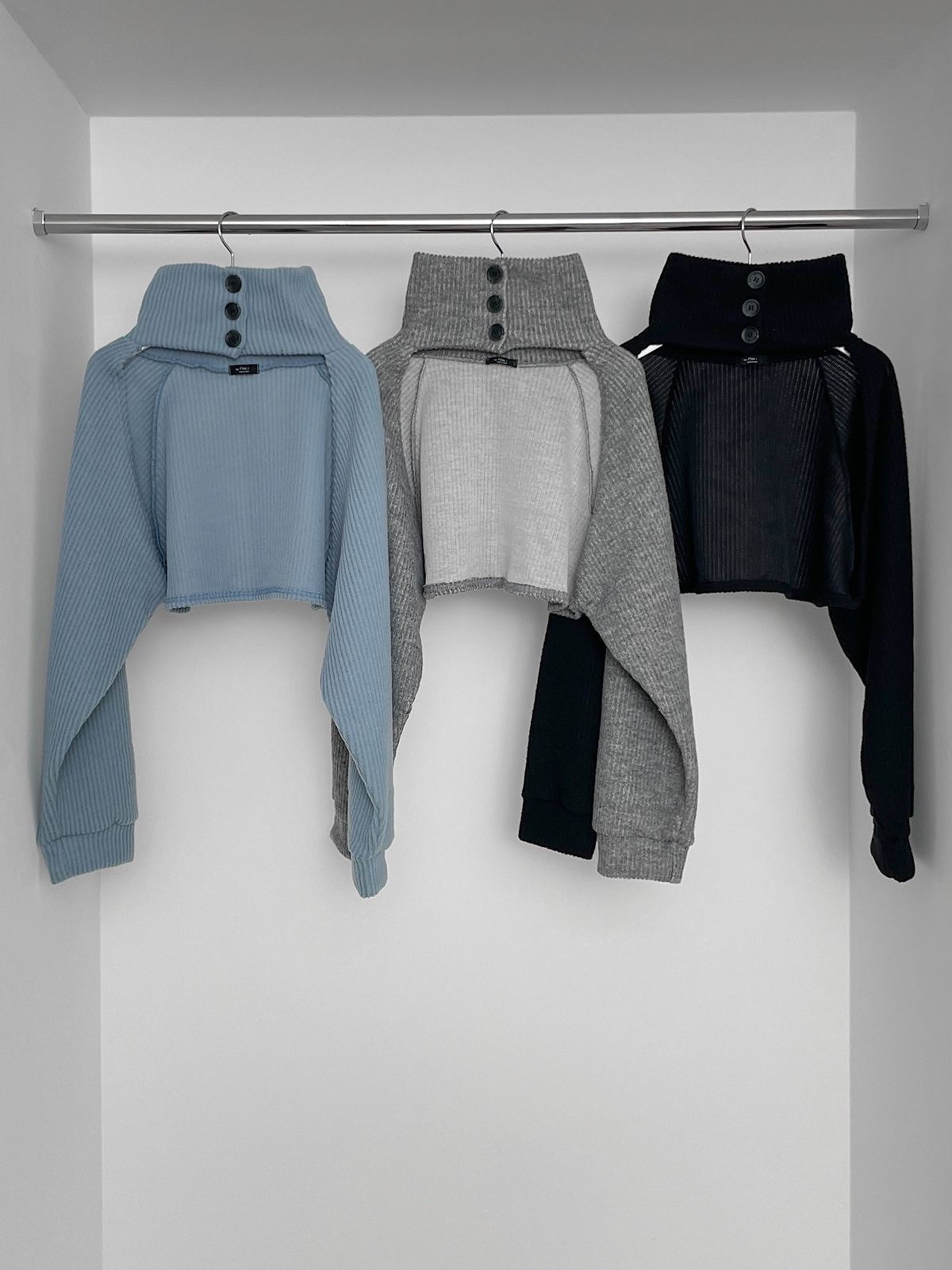 品名:터틀넥 볼레로 ◎※☞颜色:그레이, 블랙, 소라 ◎※☞尺寸:FREE ◎※☞材质:스판 5%,聚酯 95% 翻译