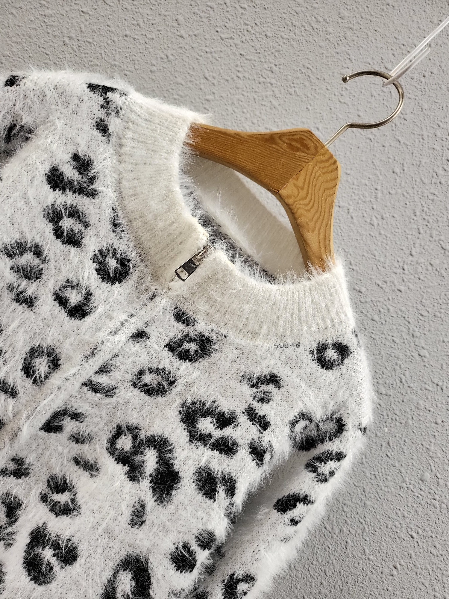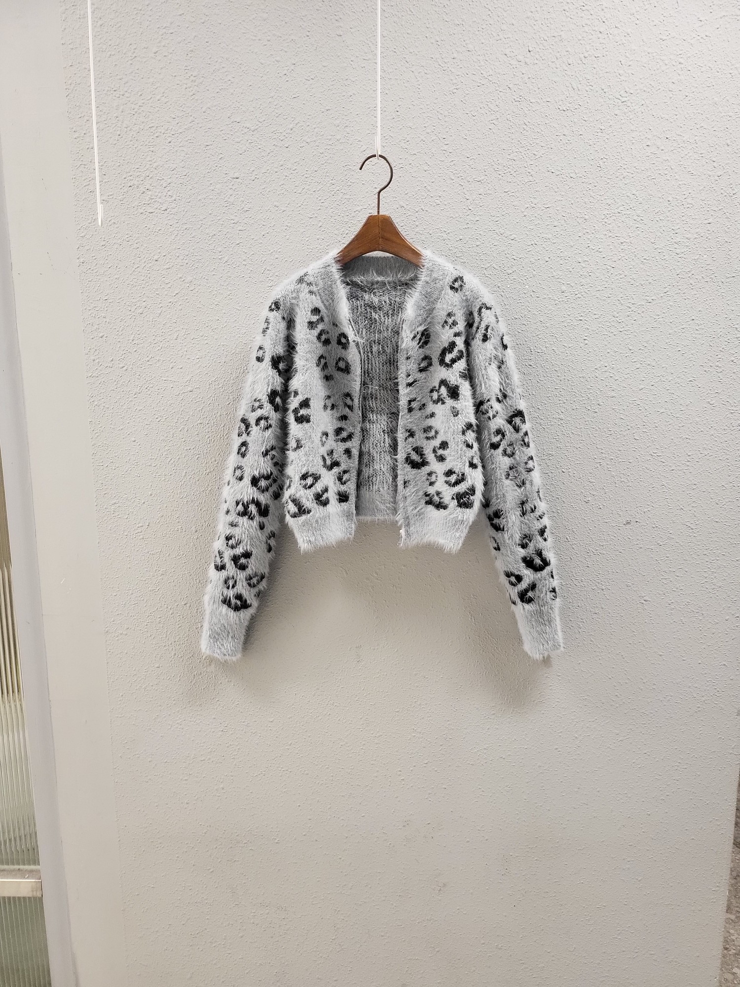 品名:호피 포근 니트 지퍼 자켓 ◎※☞颜色:그레이, 아이보리 ◎※☞尺寸:FREE ◎※☞材质:腈纶 20%,马海毛 80% 翻译