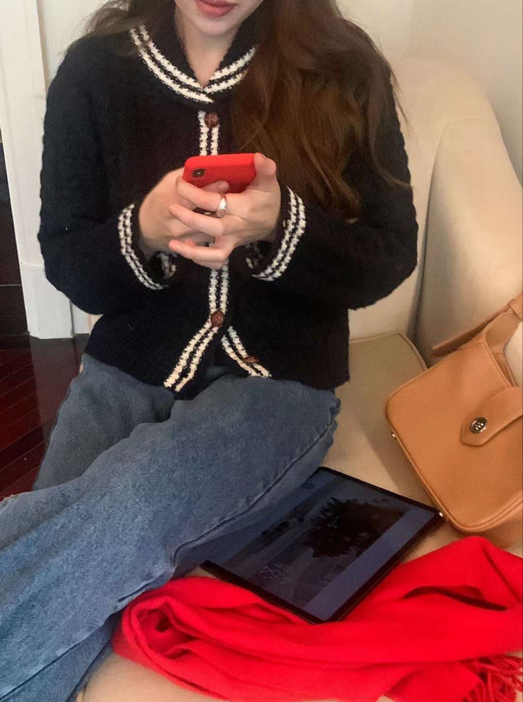 品名:켄벤싱니트 ◎※☞颜色:네이비, 베이지 ◎※☞尺寸:FREE ◎※☞材质:腈纶 95%,羊毛 5% 翻译