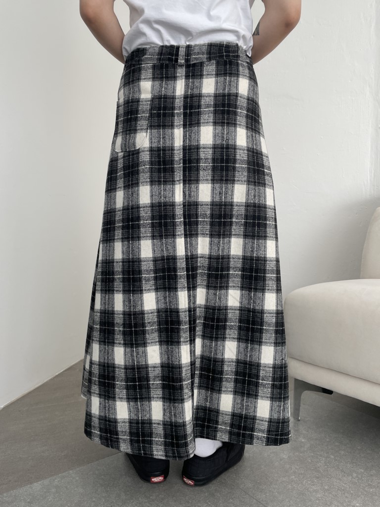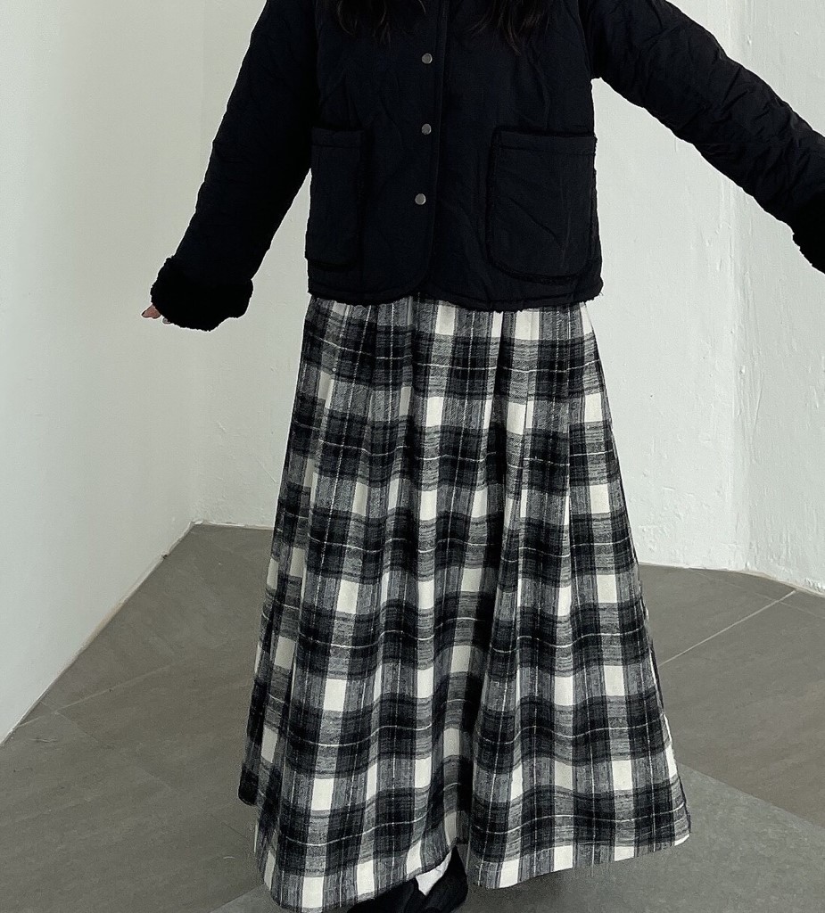 品名:时尚黑白格纹a字长裙 ◎※☞颜色:베이지, 블랙 ◎※☞尺寸:FREE ◎※☞材质:羊毛 10%,聚酯 90% 翻译