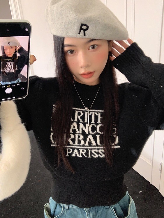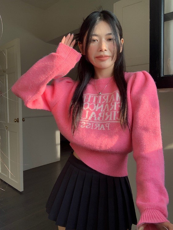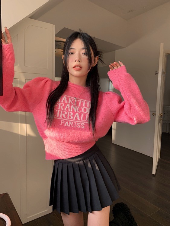 品名:퍼프영문니트 ◎※☞颜色:블랙, 핑크 ◎※☞尺寸:FREE ◎※☞材质:聚酯 100% 翻译
