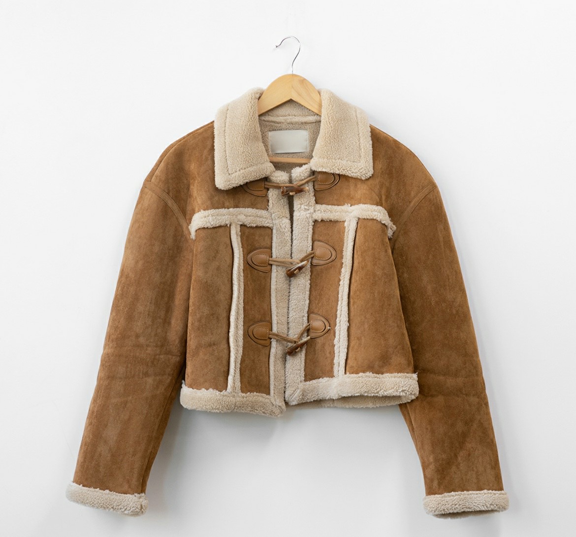 品名:트리덤블무스탕자켓 ◎※☞颜色:진브라운, 카멜, 카키브라운 ◎※☞尺寸:FREE ◎※☞材质:聚酯 100% 翻译