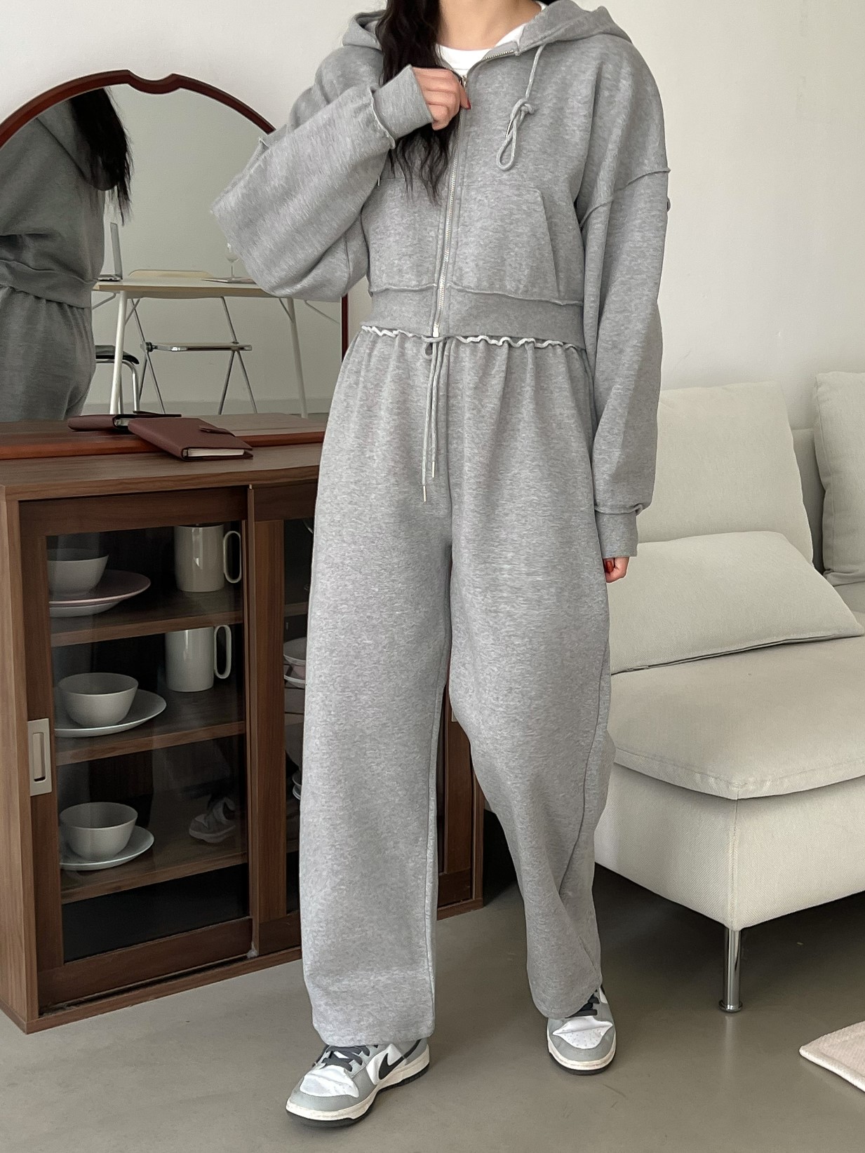 品名:기모오버PT ◎※☞颜色:그레이, 블랙, 오트밀 ◎※☞尺寸:FREE ◎※☞材质:纯棉 100% 翻译