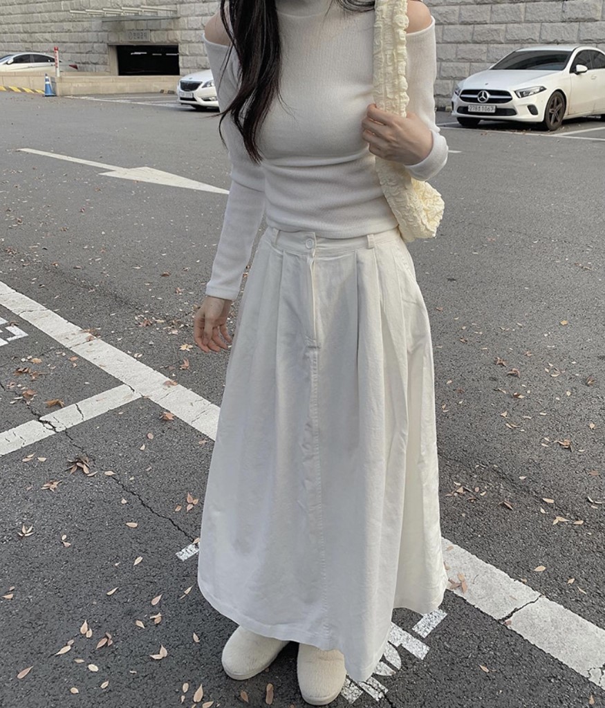 品名:히치 주름 핀턱 SK ◎※☞颜色:블랙, 아이보리 ◎※☞尺寸:FREE ◎※☞材质:纯棉 100% 翻译