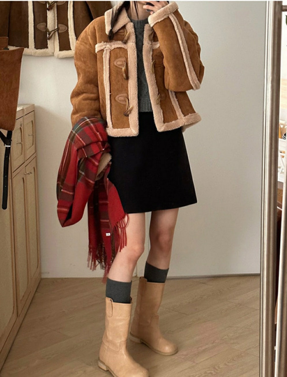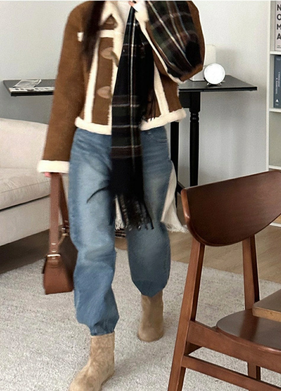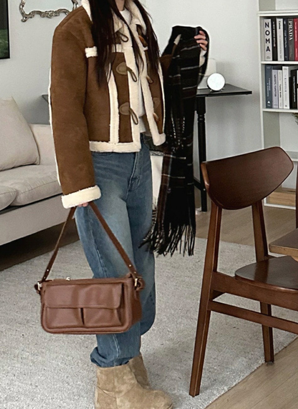 品名:트리덤블무스탕자켓 ◎※☞颜色:진브라운, 카멜, 카키브라운 ◎※☞尺寸:FREE ◎※☞材质:聚酯 100% 翻译