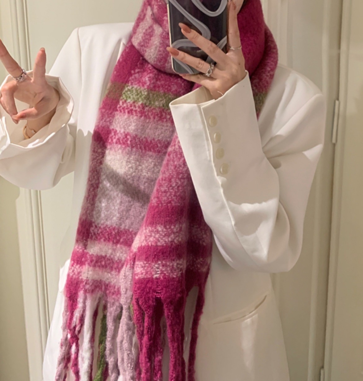 品名:램스울체크목도리 #두꺼운도톰한롱머플러겨울잡화체크 ◎※☞颜色:보라, 카키, 핑크 ◎※☞尺寸:F ◎※☞材质:羊毛 100% 翻译