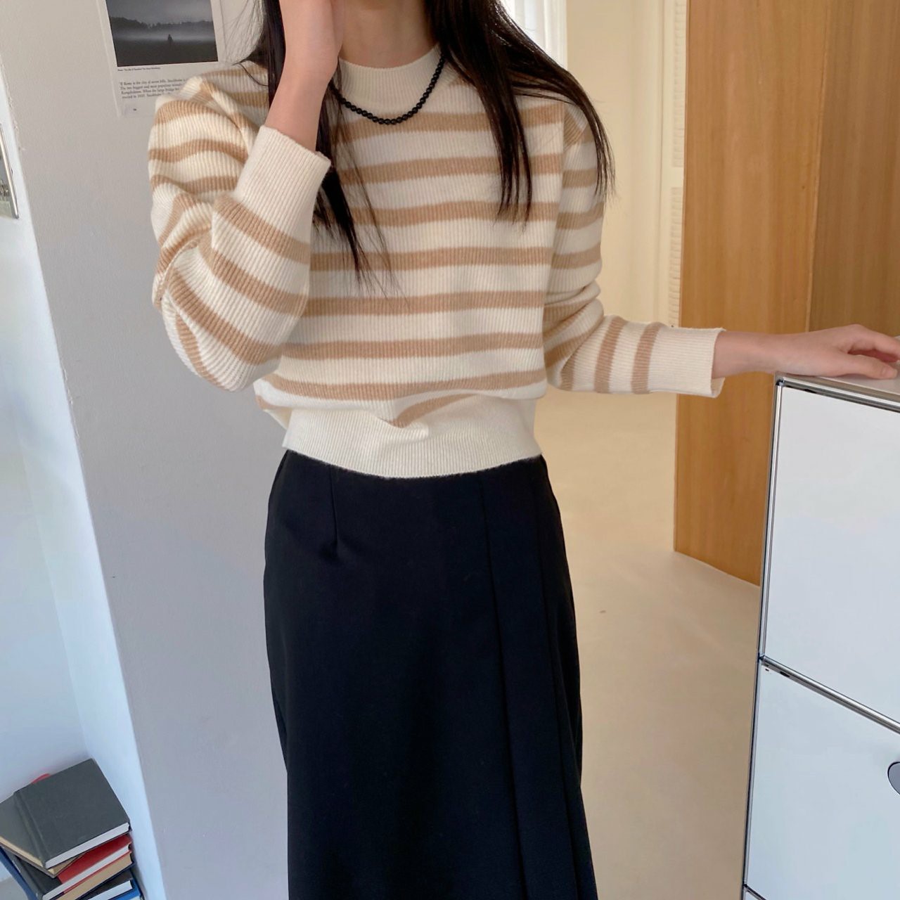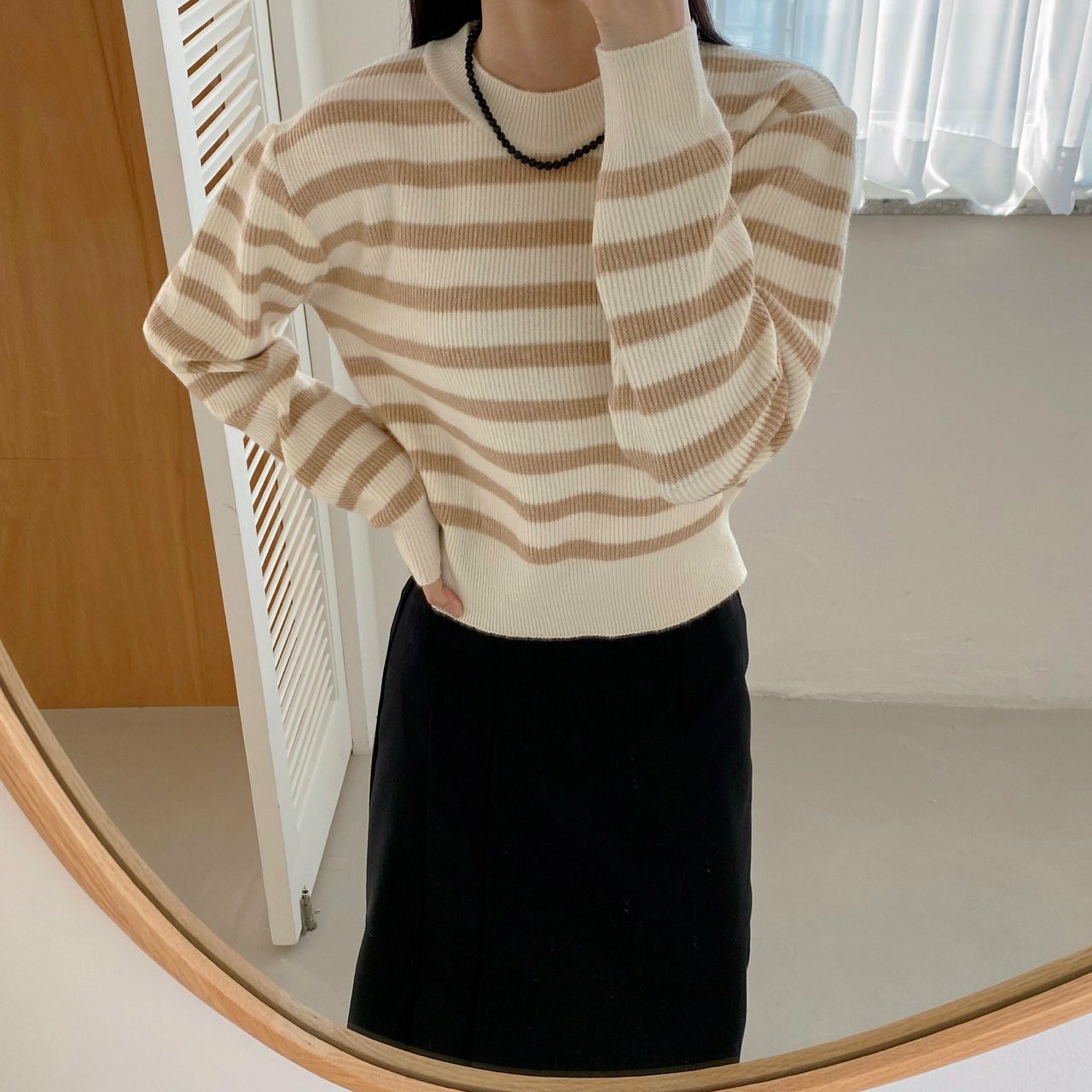 品名:니쥬단가라니트 #단가라 #니트 ◎※☞颜色:그린, 라이트그레이, 베이지, 블랙 ◎※☞尺寸:FREE ◎※☞材质:腈纶 50%,聚酯 50% 翻译