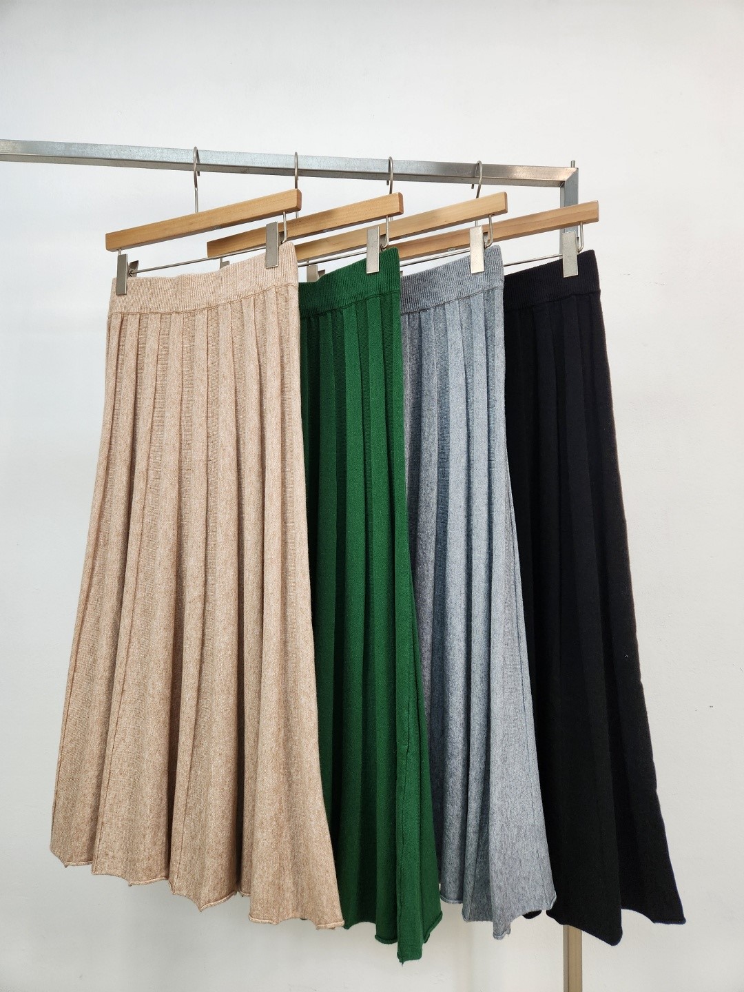 品名:신상품)햅번주름 밴딩스커트 ◎※☞颜色:그레이, 베이지, 블랙, 초록 ◎※☞尺寸:FREE ◎※☞材质:腈纶 30%,聚酯 70% 翻译