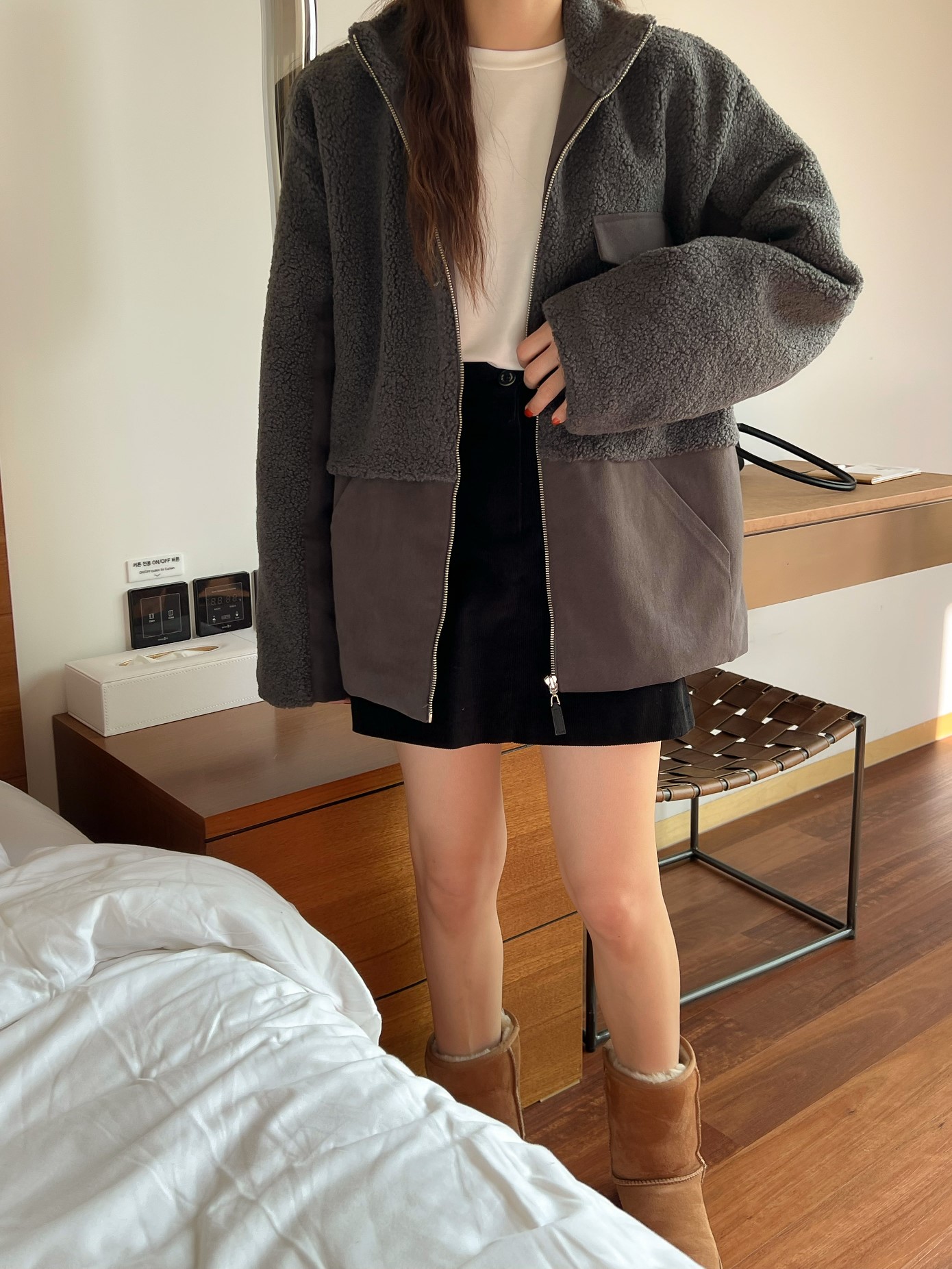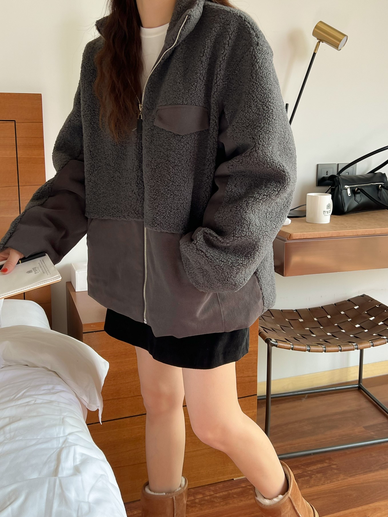 品名:뽀글배색JP ◎※☞颜色:다크그레이, 브라운 ◎※☞尺寸:FREE ◎※☞材质:聚酯 100% 翻译