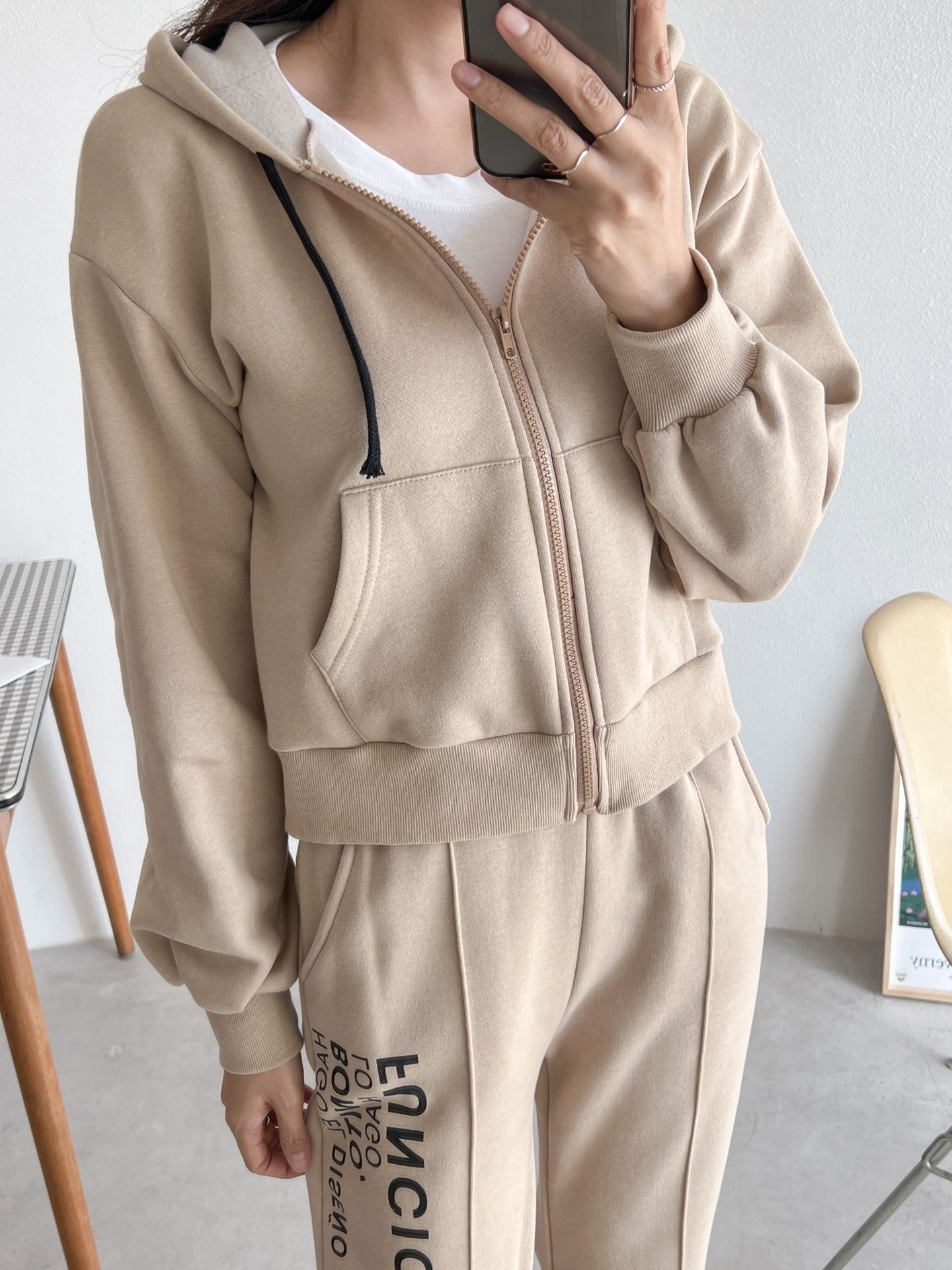 品名:기모하고집업세트 ◎※☞颜色:베이지, 블랙 ◎※☞尺寸:FREE ◎※☞材质:纯棉 50%,聚酯 50% ◎※☞注意事项:只能干洗,只能手洗,不能手洗,机洗,不能使用漂白剂,不能烘干,不能熨烫,不能曲折 翻译