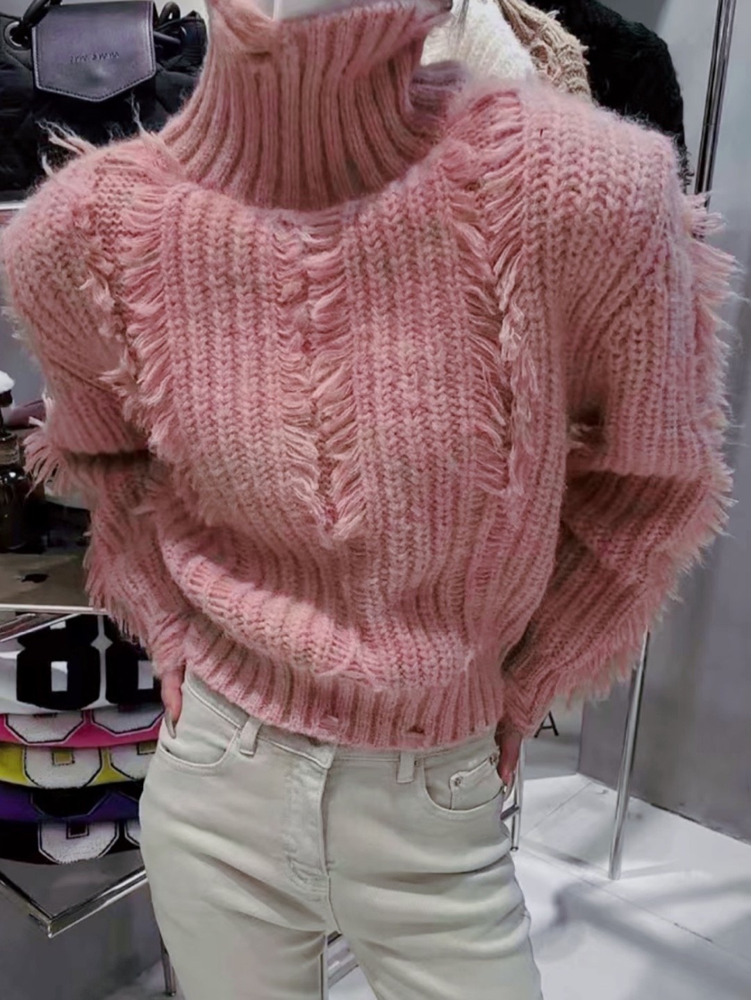 品名:빈티지폴라니트 여성상의로맨틱시크섹시겨울니트폴라캐주얼 ◎※☞颜色:블랙, 아이보리, 핑크 ◎※☞尺寸:FREE ◎※☞材质:聚酯 100% 翻译
