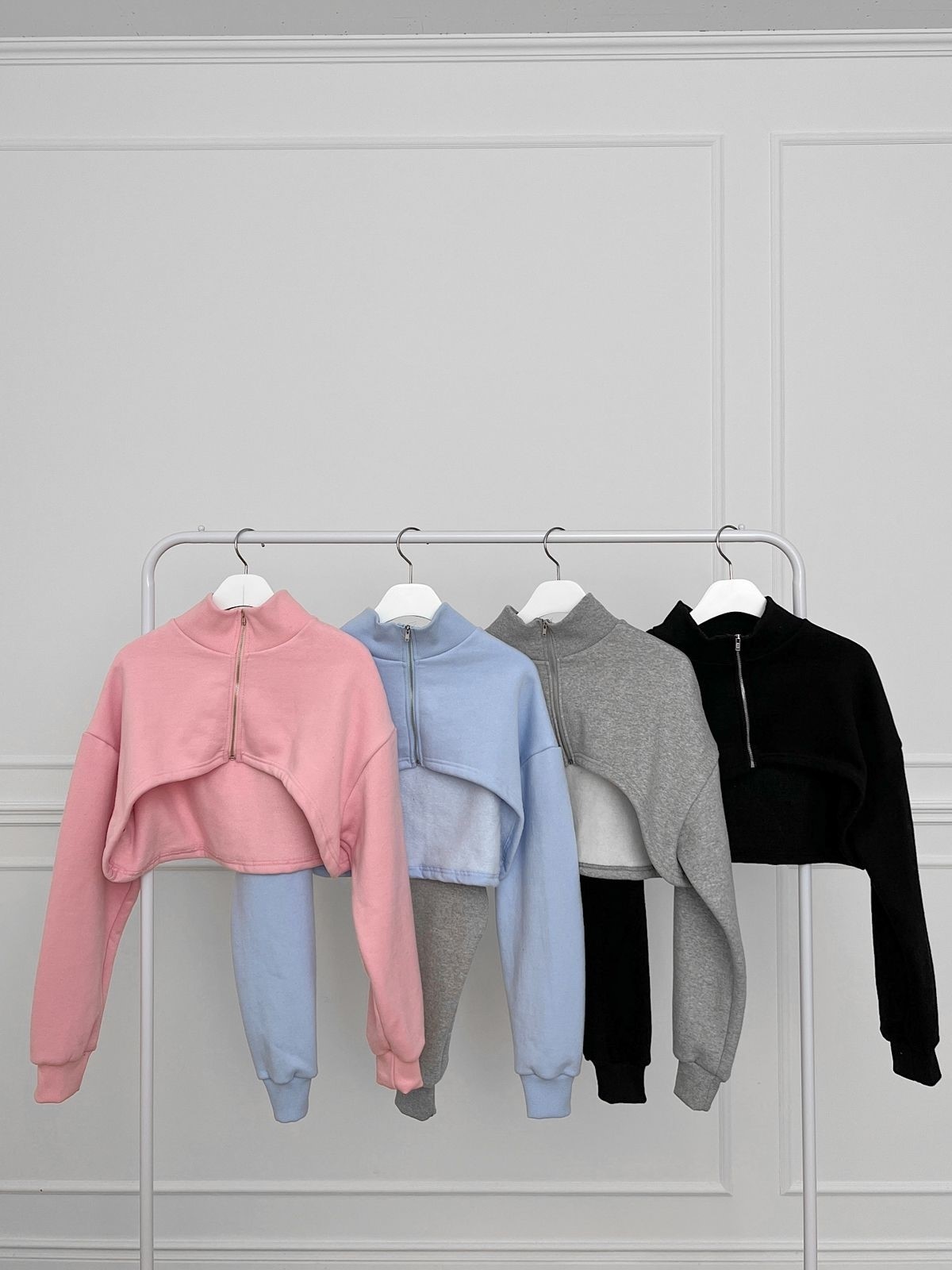 品名:크롭폴라집업 ◎※☞颜色:그레이, 블랙, 소라, 핑크 ◎※☞尺寸:FREE ◎※☞材质:纯棉 100% 翻译