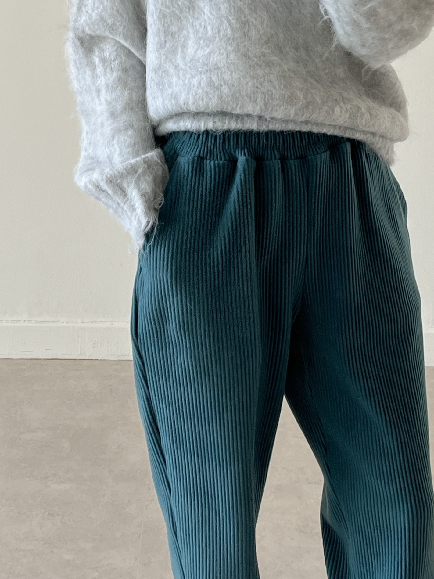 品名:골지주름조거팬츠 ◎※☞颜色:그린, 네이비, 브라운, 블랙, 아이보리 ◎※☞尺寸:FREE ◎※☞材质:聚酯 100% 翻译