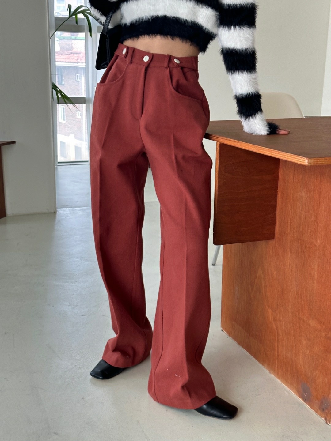 品名:피치버튼 슬랙스 ◎※☞颜色:베이지, 카멜 ◎※☞尺寸:FREE ◎※☞材质:纯棉 100% 翻译
