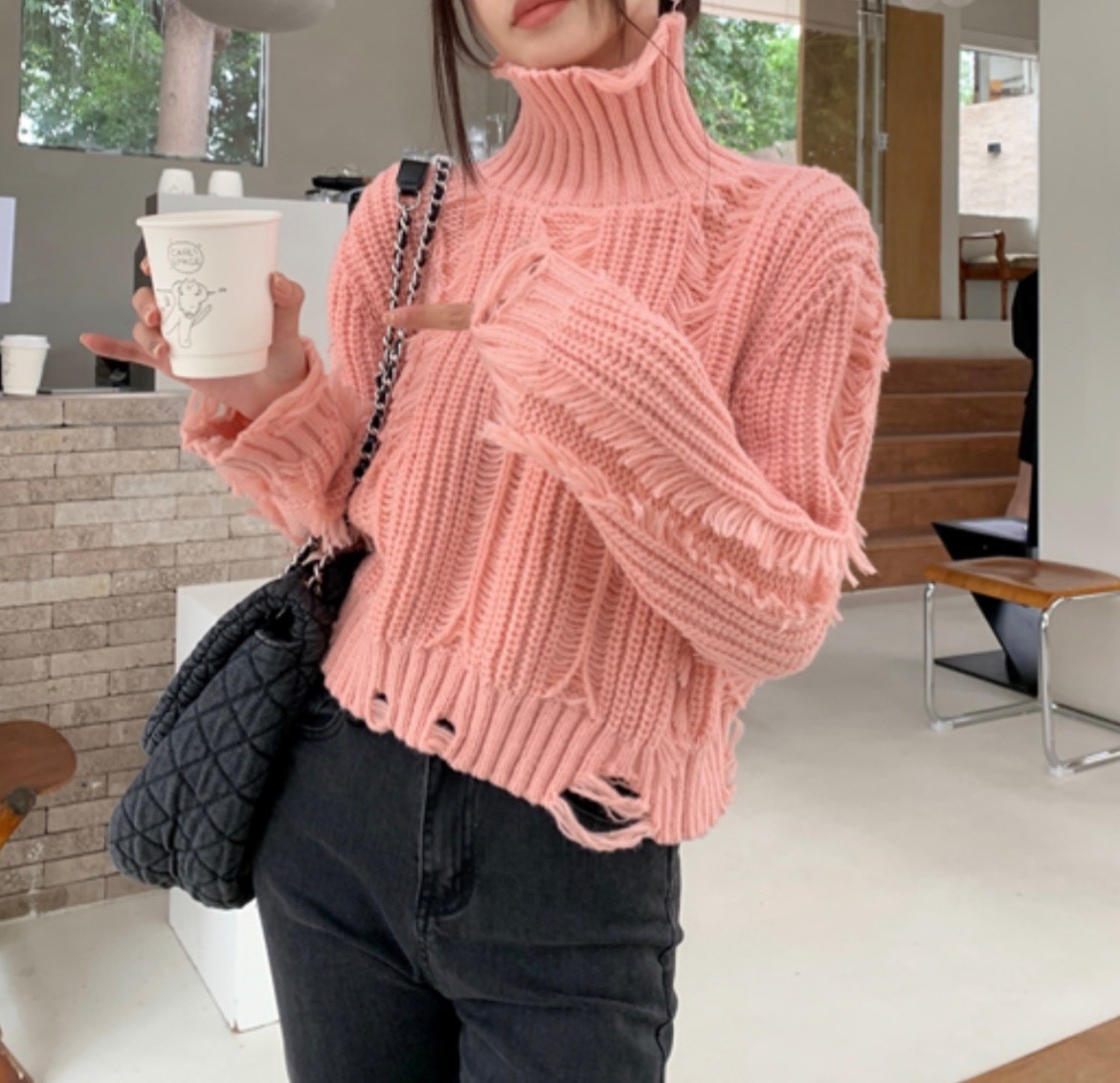 品名:컷팅구제폴라니트 #여성상의로맨틱시크섹시겨울시크 ◎※☞颜色:블랙, 아이보리, 핑크 ◎※☞尺寸:FREE ◎※☞材质:聚酯 100% 翻译