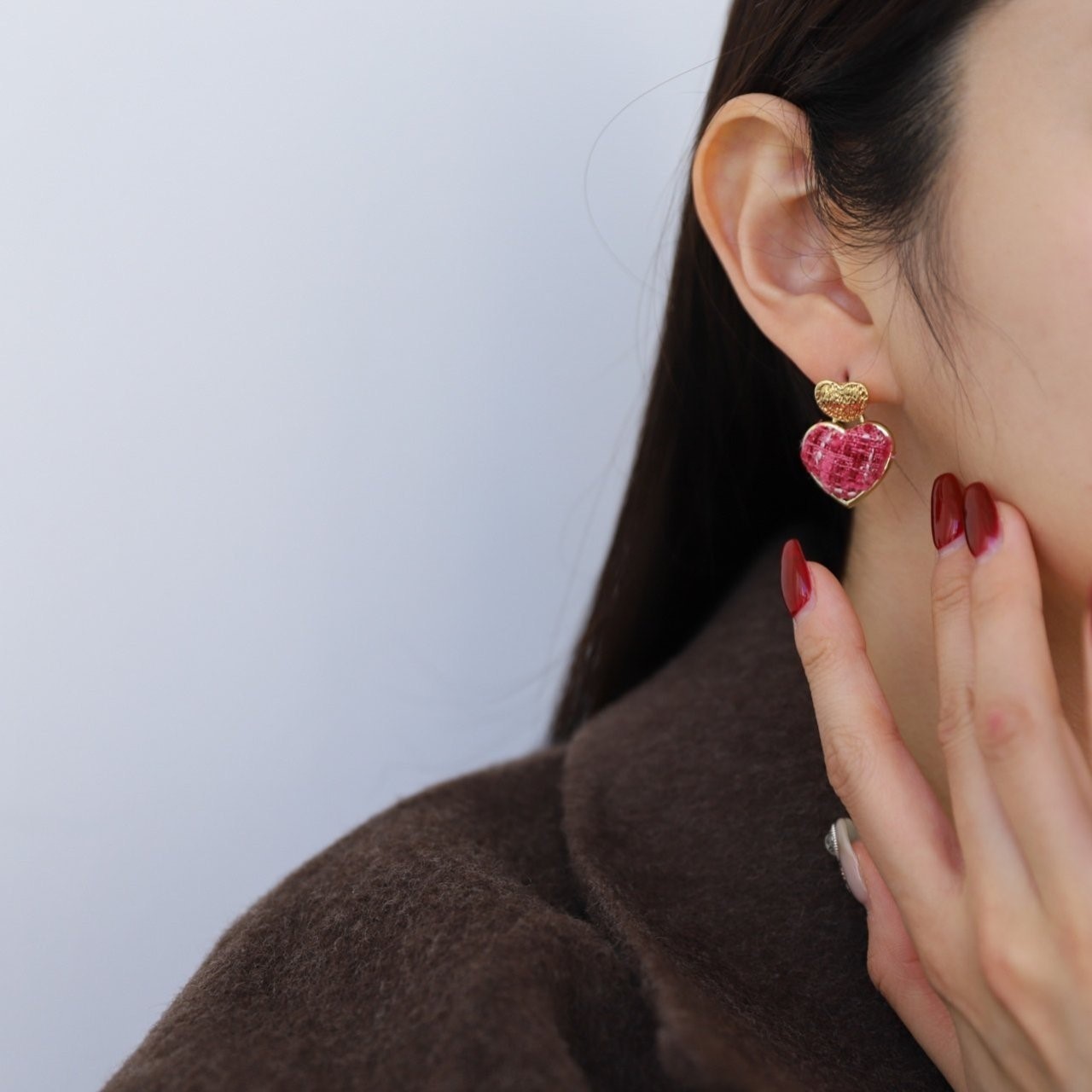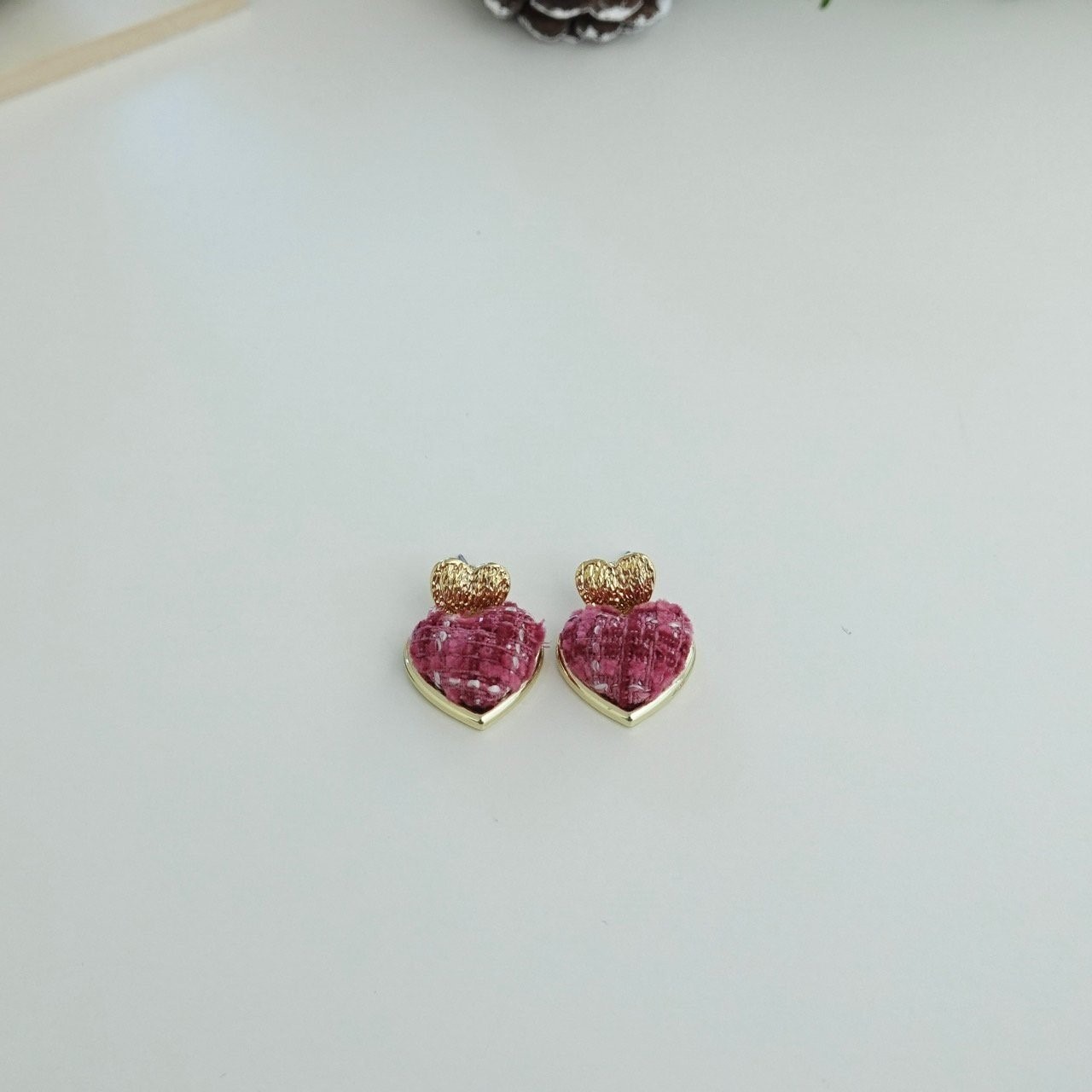品名:E1906 트위드 하트 귀걸이 ◎※☞颜色:그린, 베이지, 퍼플, 핑크 ◎※☞尺寸:FREE ◎※☞材质:镀金 0% 翻译
