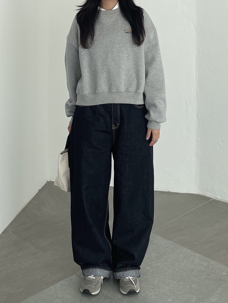 品名:简约圆领加绒纯棉卫衣 ◎※☞颜色:그레이, 네이비, 아이보리 ◎※☞尺寸:FREE ◎※☞材质:纯棉 100% 翻译