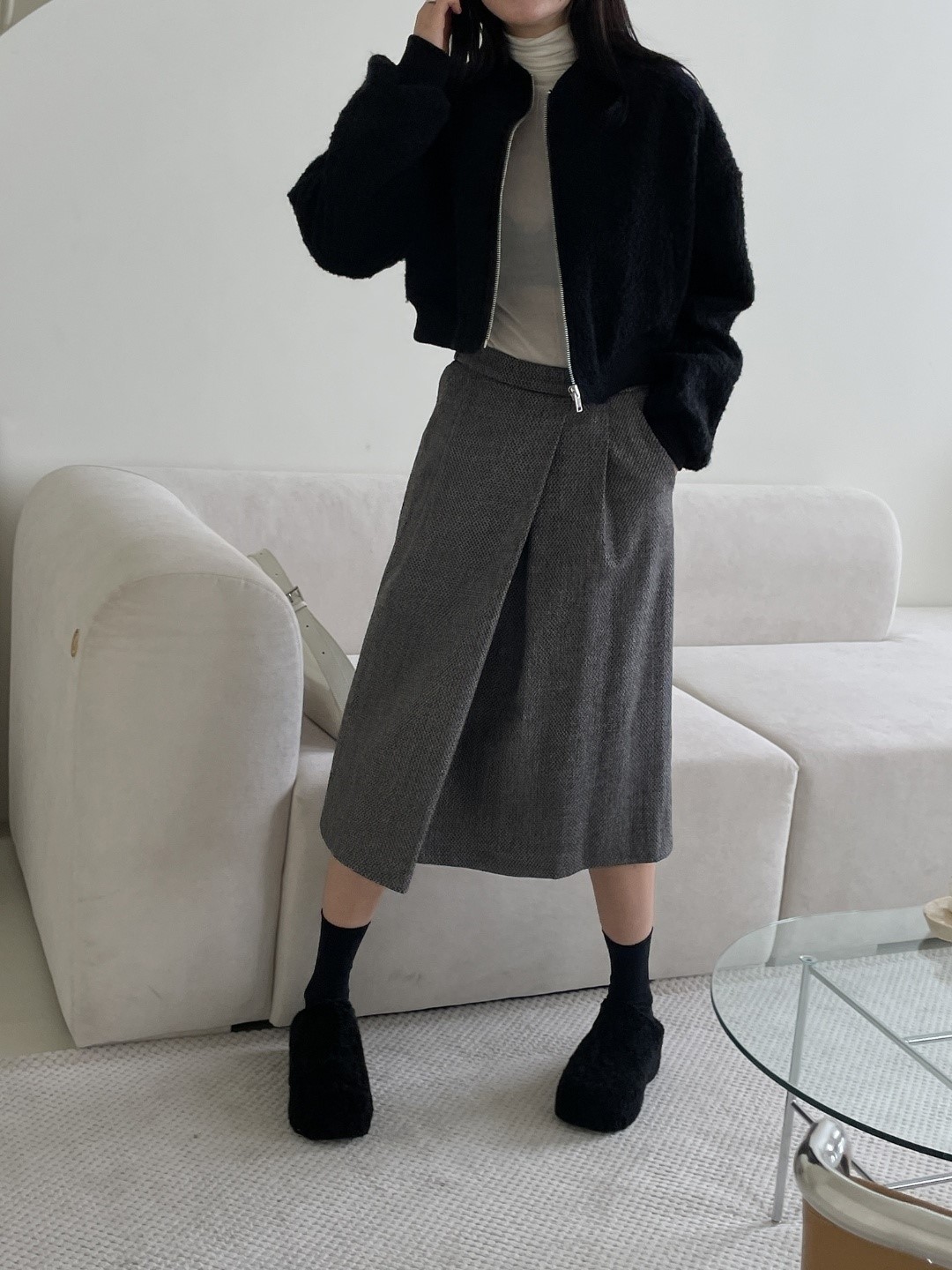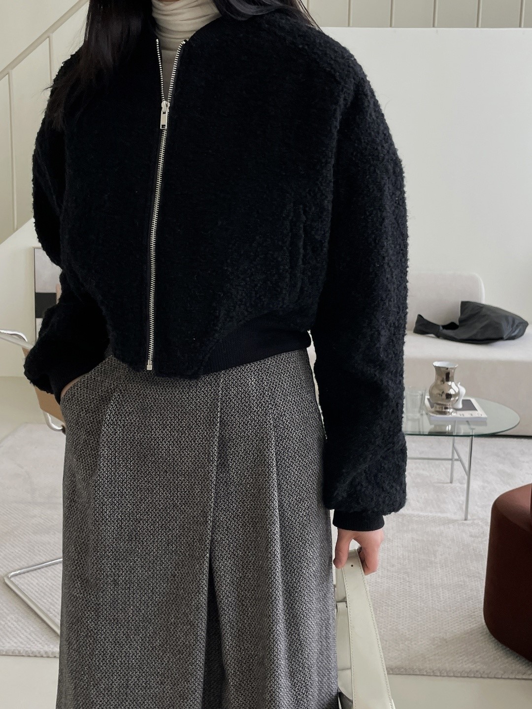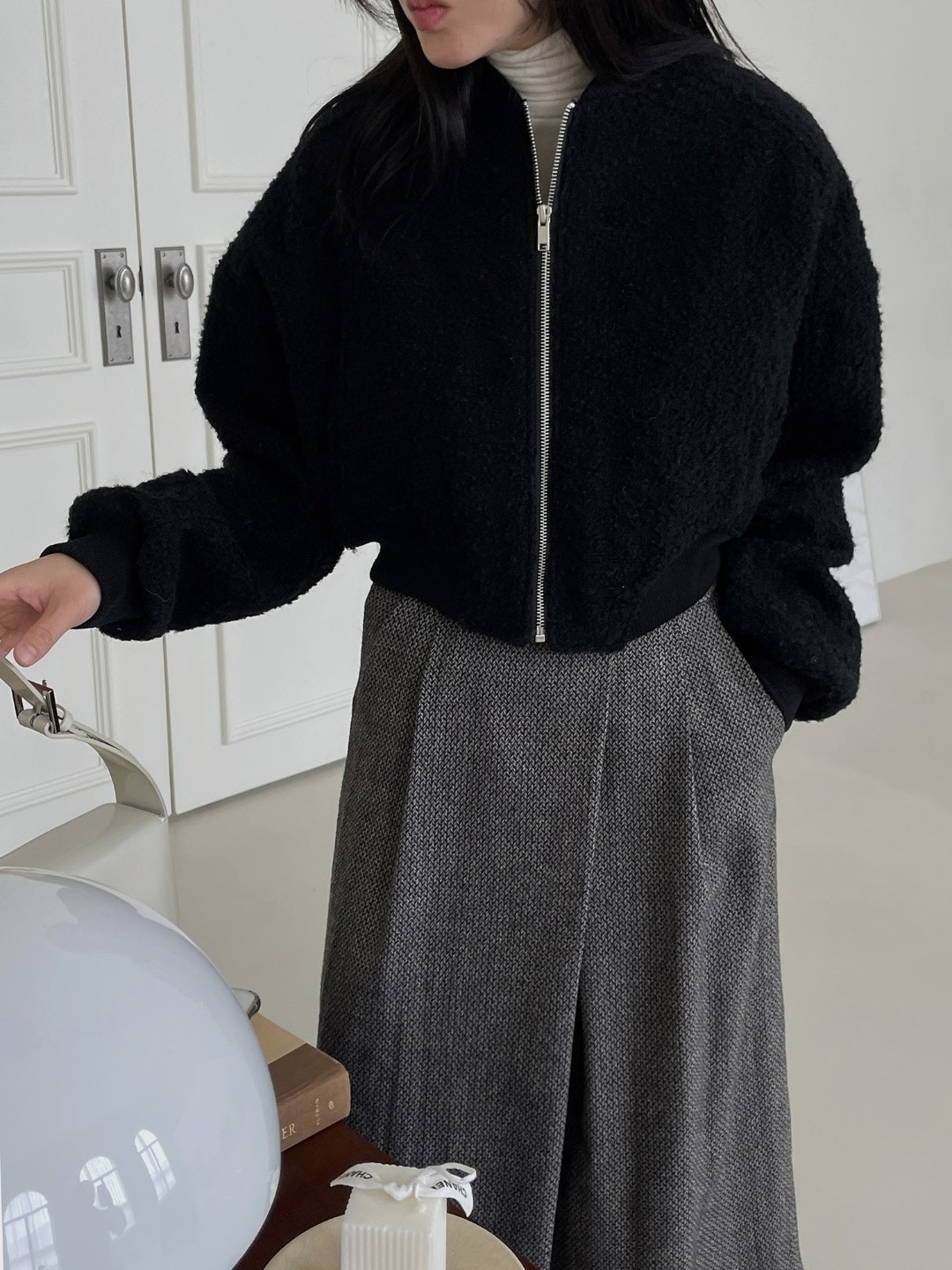 品名:에이미jp ◎※☞颜色:블랙, 아이보리 ◎※☞尺寸:FREE ◎※☞材质:폴리 70%,울 30% 翻译