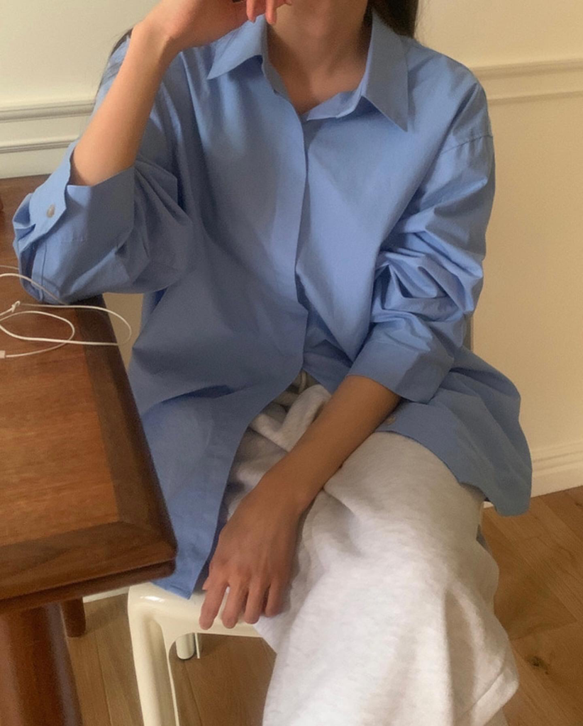 品名:히든 베이직 셔츠 (거래처 사진) ◎※☞颜色:소라, 아이 ◎※☞尺寸:FREE ◎※☞材质:纯棉 100% 翻译