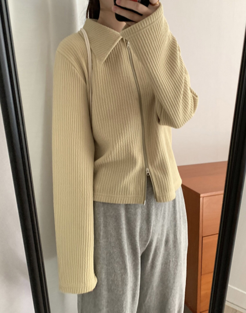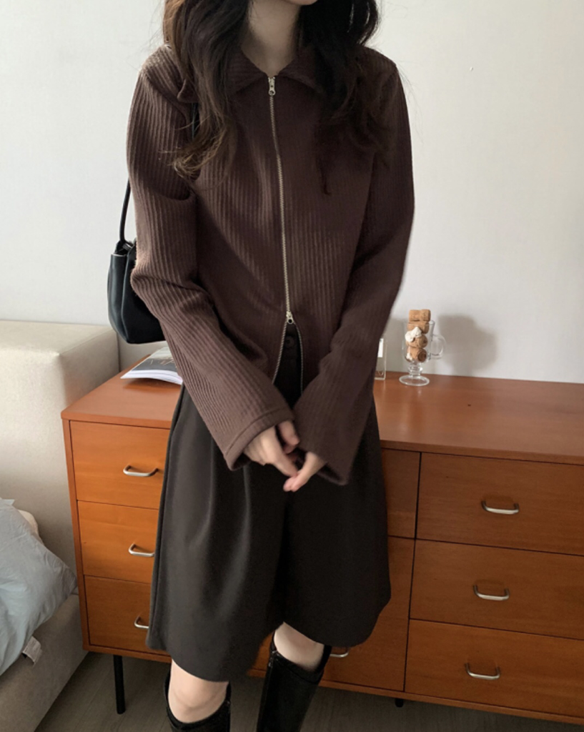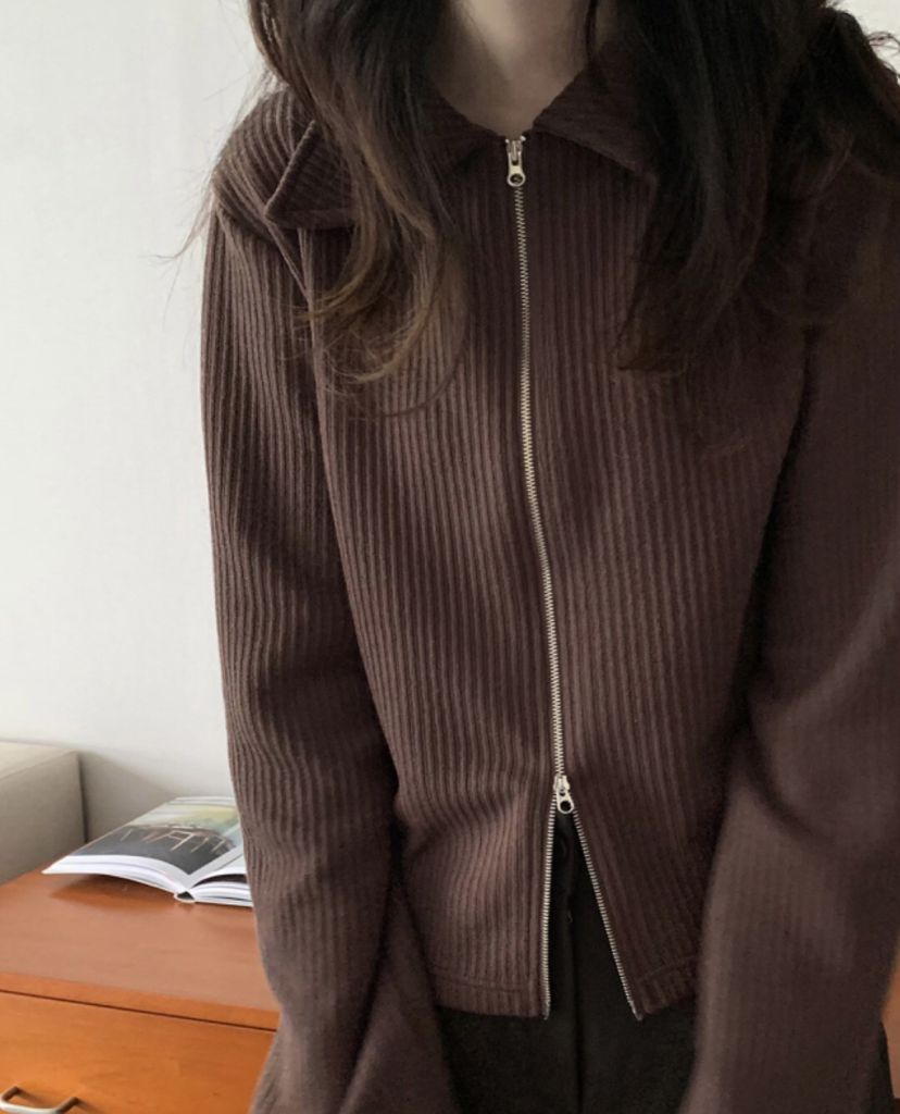 品名:투웨이 니트 카라 집업 /거래처 사진 ◎※☞颜色:브라운, 블루, 오트, 올리브 ◎※☞尺寸:FREE ◎※☞材质:聚酯 95%,스판 5% 翻译