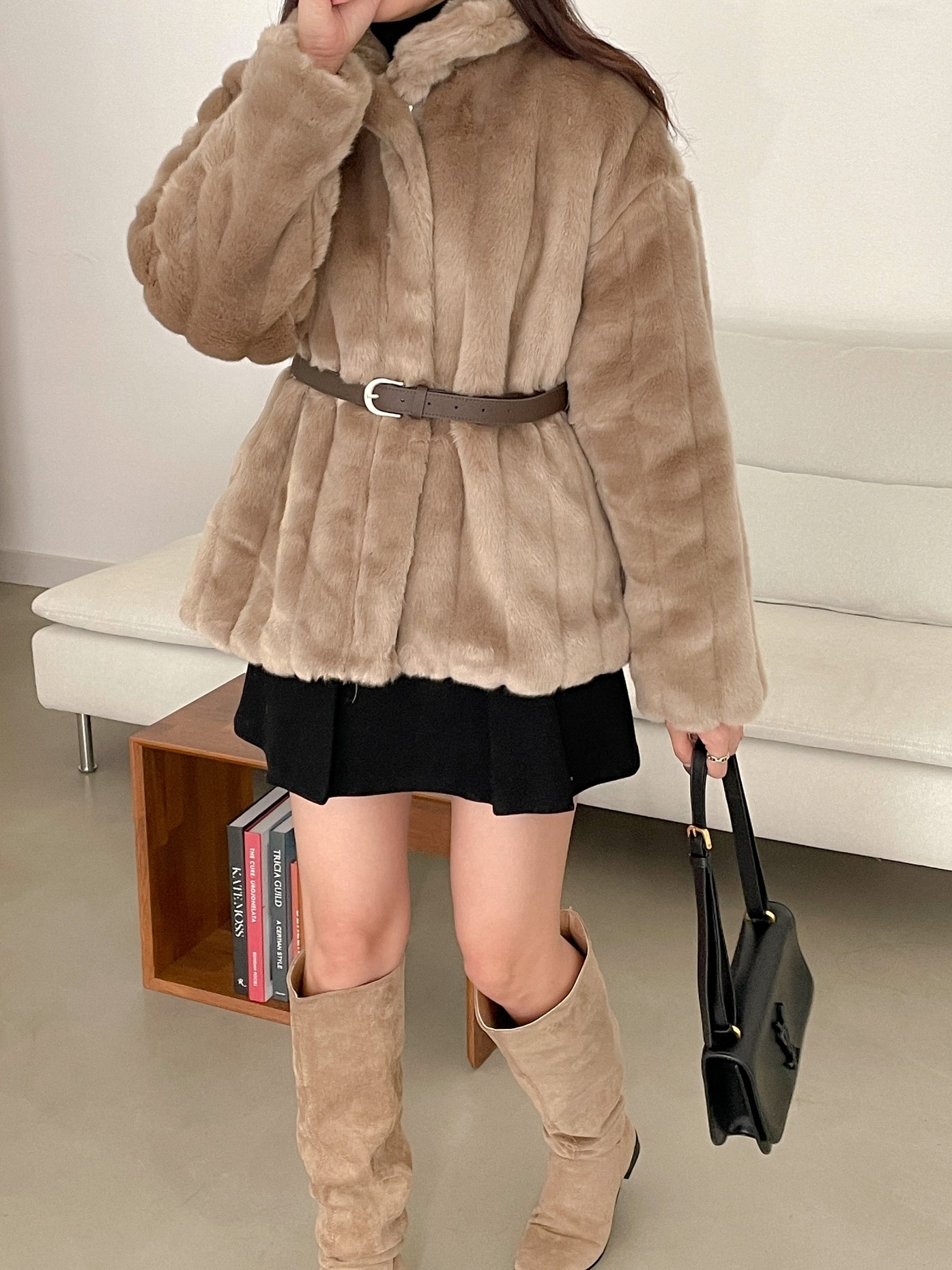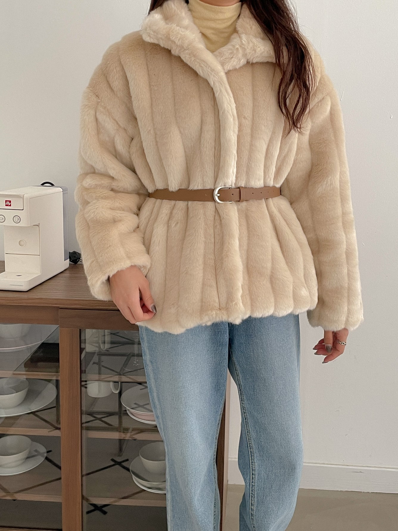 品名:벨트퍼JP ◎※☞颜色:모카, 베이지 ◎※☞尺寸:FREE ◎※☞材质:腈纶 95%,聚酯 5% 翻译
