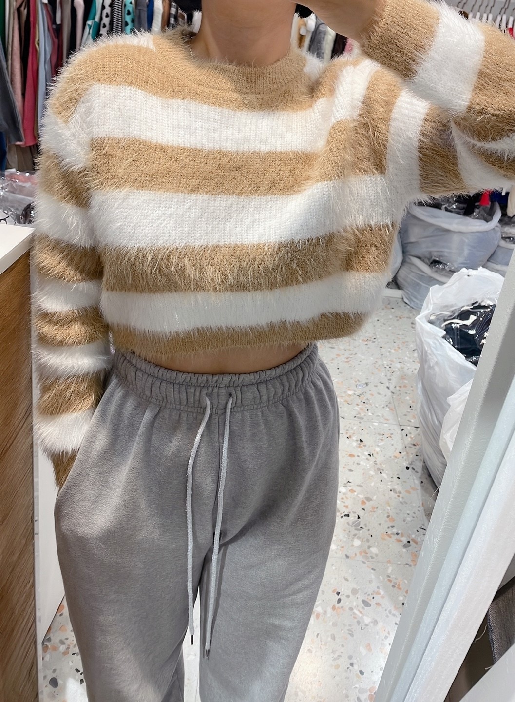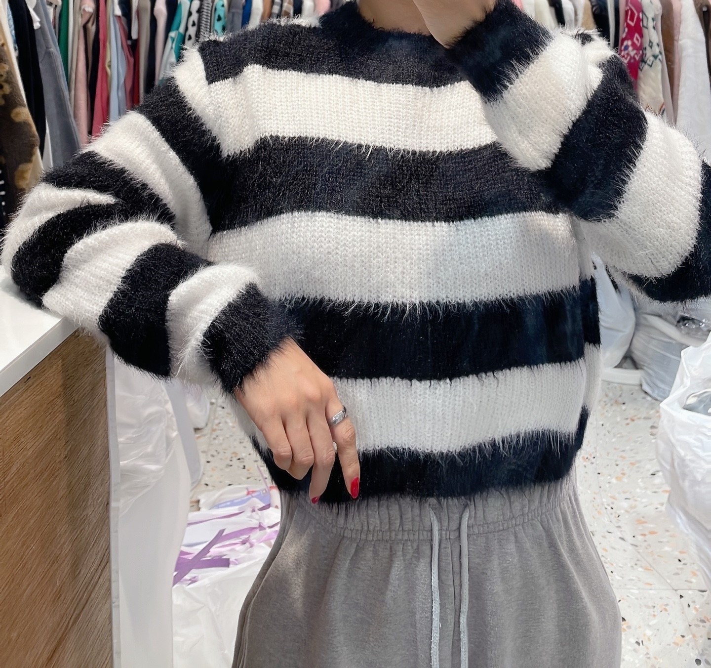 品名:앙고라단가니트 #여성상의캐주얼시크섹시로맨틱라운드겨울 ◎※☞颜色:베이지, 블랙, 카키 ◎※☞尺寸:FREE ◎※☞材质:聚酯 100% 翻译