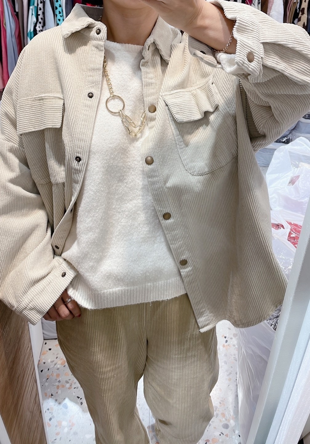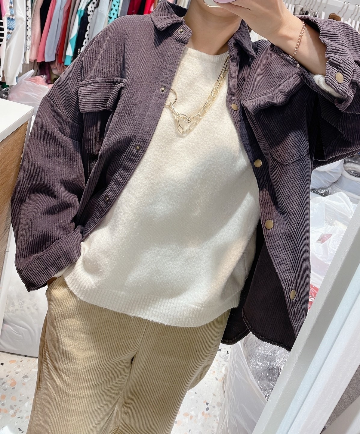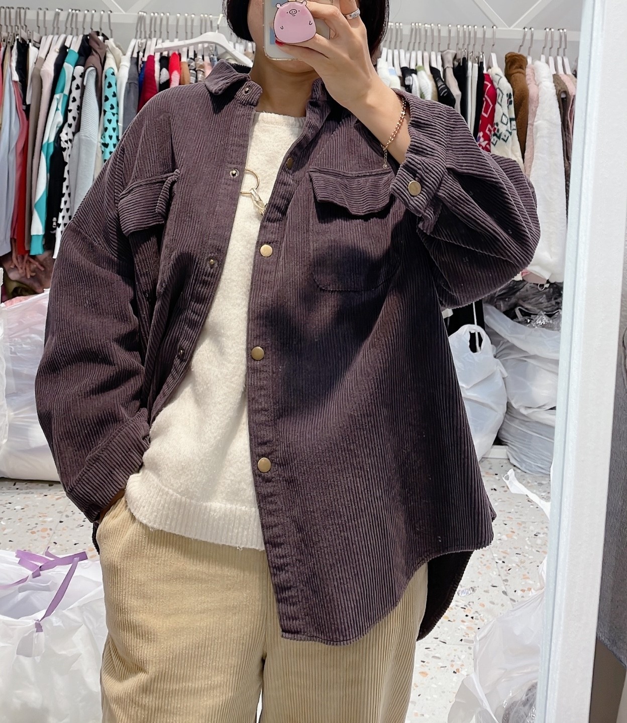 品名:포켓골덴셔츠 #여성상의캐주얼시크남방코듀로이 ◎※☞颜色:먹색, 베이지 ◎※☞尺寸:FREE ◎※☞材质:纯棉 100% 翻译