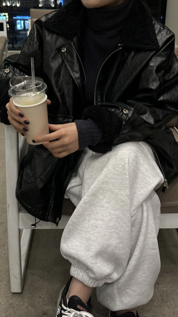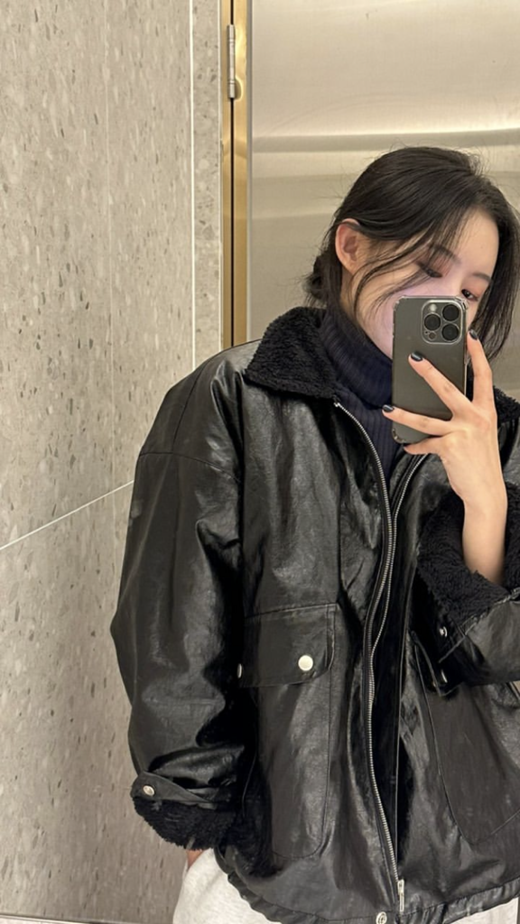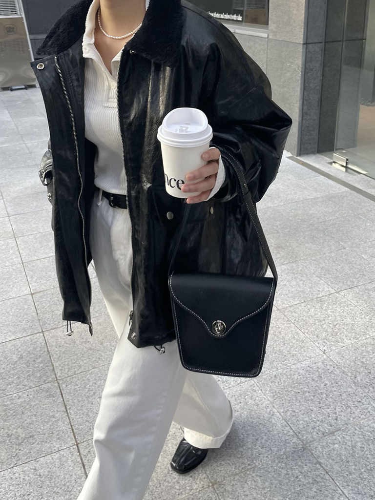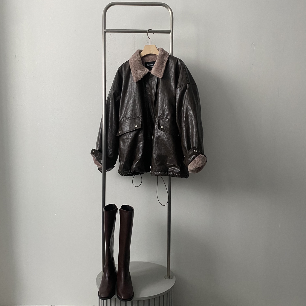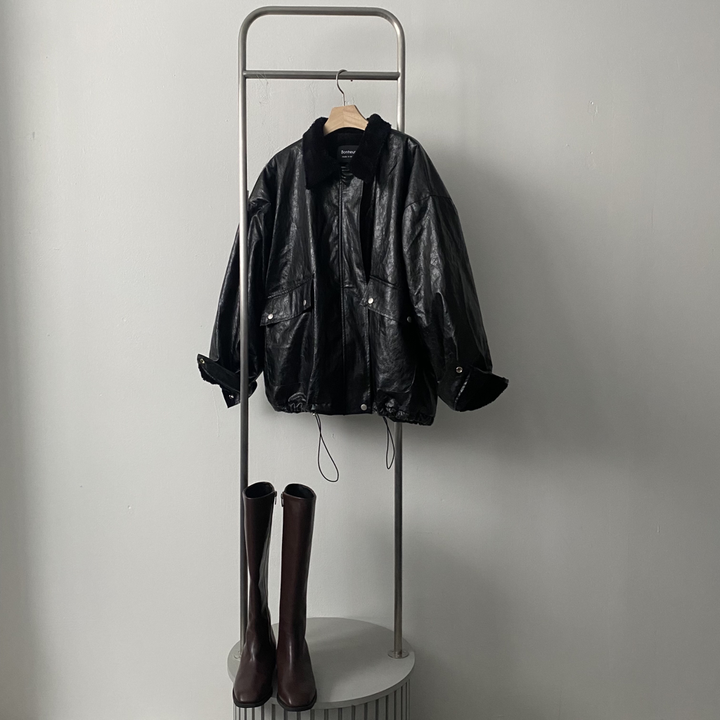品名:时尚绒毛内衬宽松皮夹克外套 ◎※☞颜色:베이지, 브라운, 블랙 ◎※☞尺寸:FREE ◎※☞材质:聚氨酯 100% 翻译