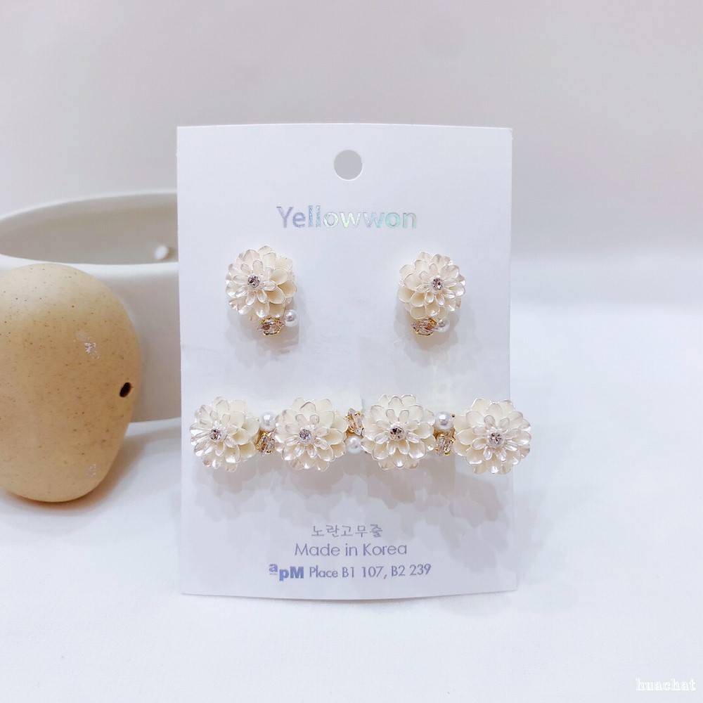 套组 发夹 耳钉 花朵 马眼 水晶 珍珠