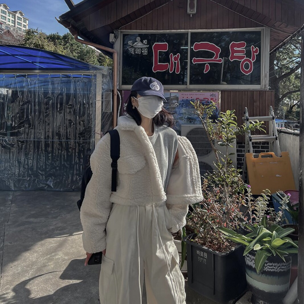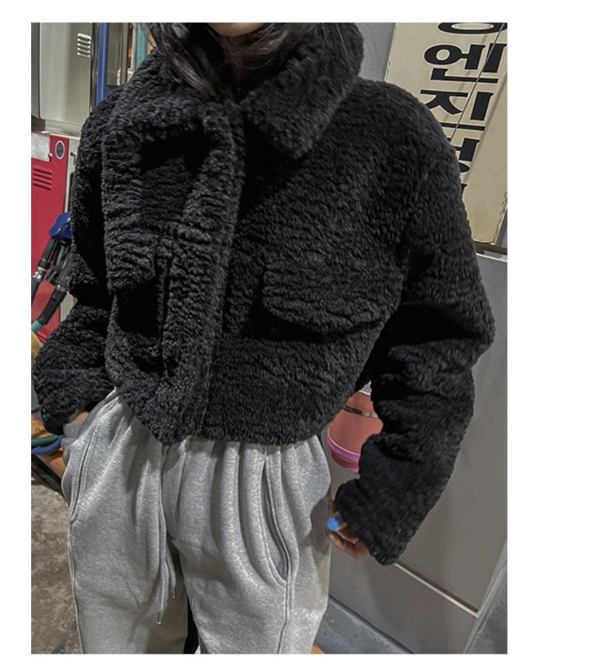 品名:양면크롭무스탕 ◎※☞颜色:검정, 아이 ◎※☞尺寸:FREE ◎※☞材质:聚酯 100% 翻译