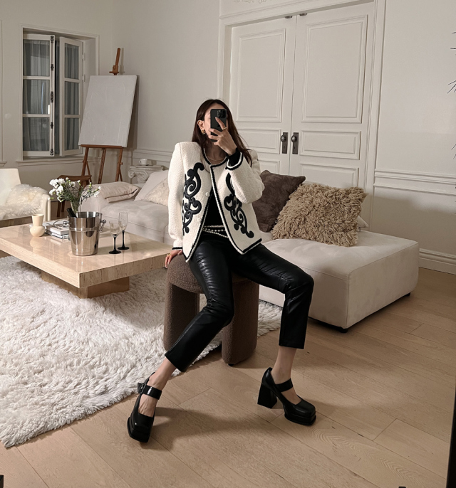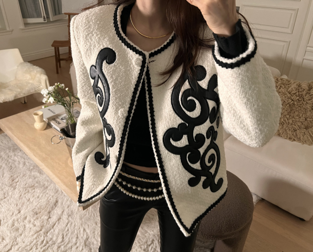 品名:르네JK)자수포인트유니크 ◎※☞颜色:블랙, 아이보리 ◎※☞尺寸:FREE ◎※☞材质:기타 100% 翻译