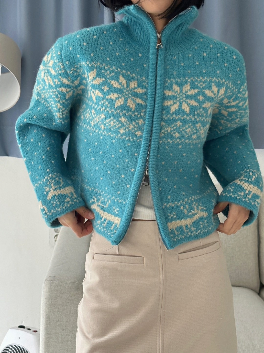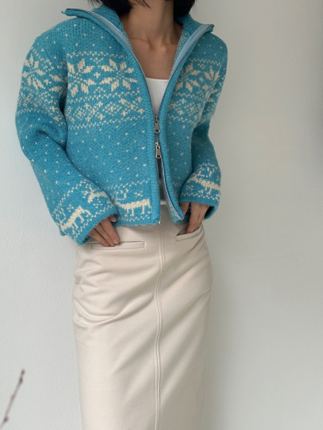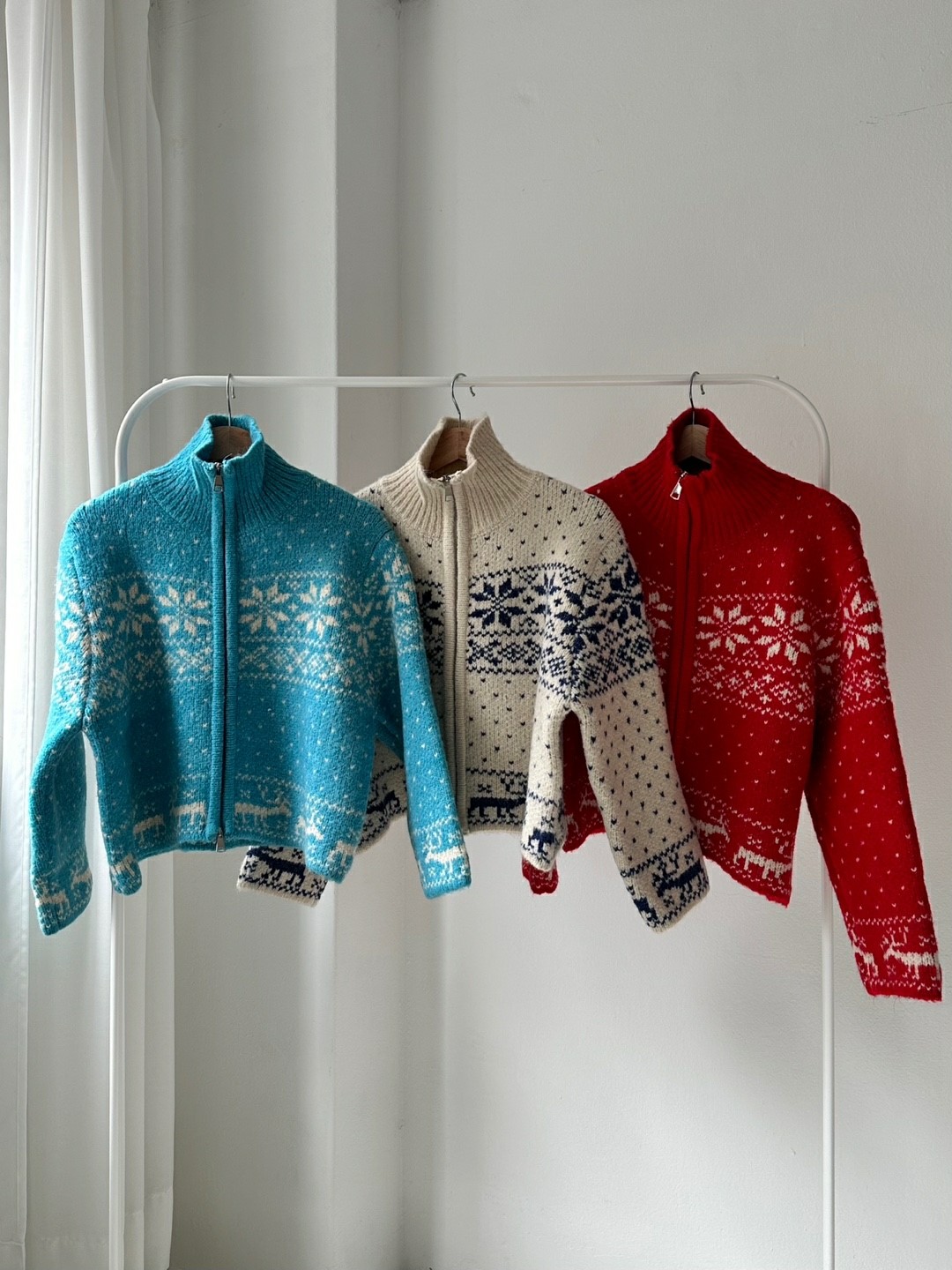 品名:캐롤 집업 ◎※☞颜色:레드, 블루, 크림 ◎※☞尺寸:FREE ◎※☞材质:腈纶 40%,羊毛 60% 翻译