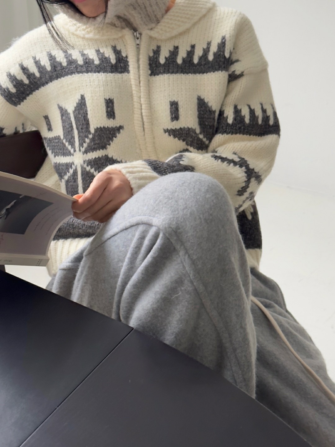 品名:노르딕 가디건 ◎※☞颜色:검정, 아이 ◎※☞尺寸:FREE ◎※☞材质:腈纶 40%,羊毛 60% 翻译