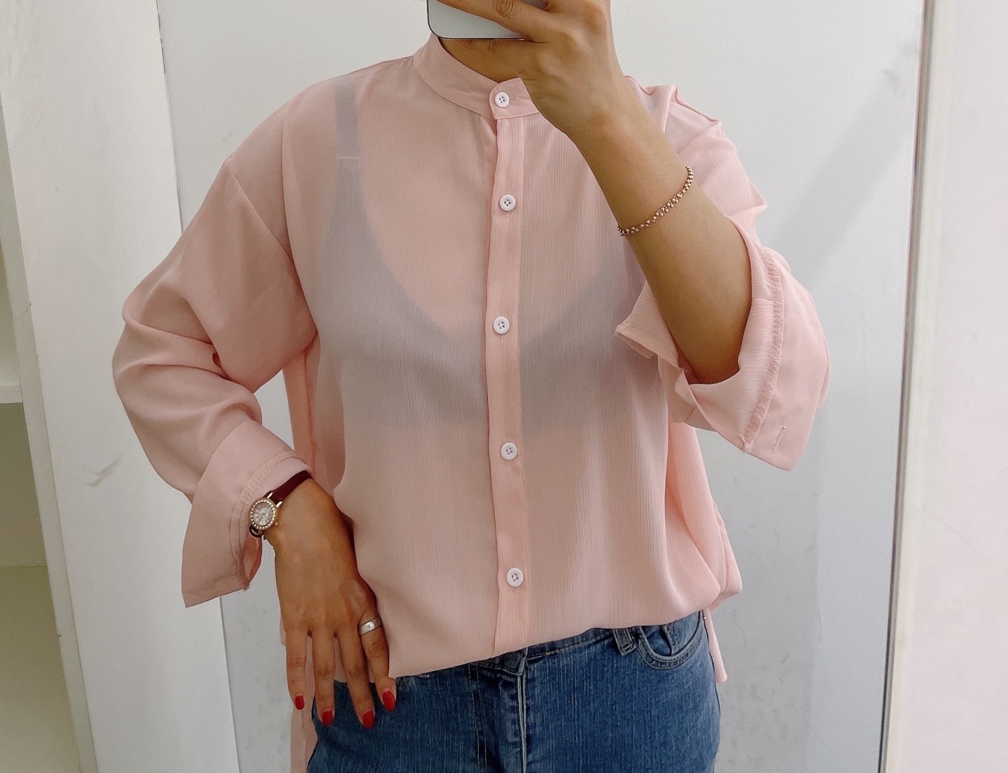 品名:시스루라운드카라셔츠 여성상의로맨틱시크섹시캐주얼유니크모던 ◎※☞颜色:핑크 ◎※☞尺寸:FREE ◎※☞材质:聚酯 100% 翻译