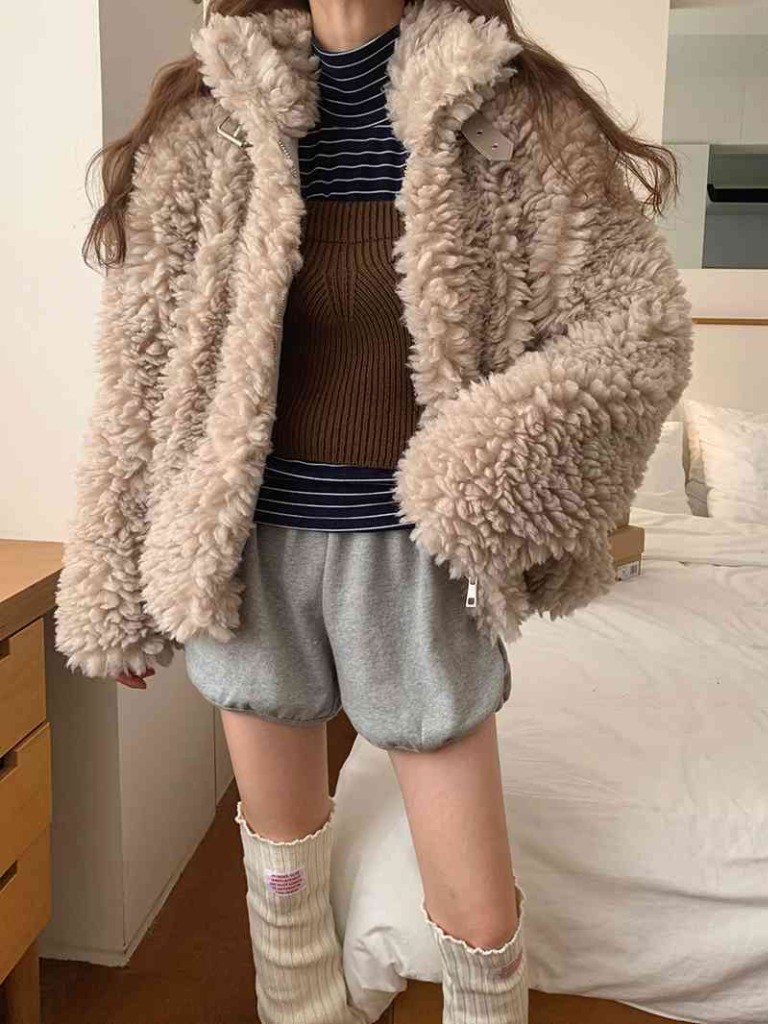 品名:비숑무스탕자켓 ◎※☞颜色:베이지, 아이보리 ◎※☞尺寸:FREE ◎※☞材质:聚酯 100% 翻译