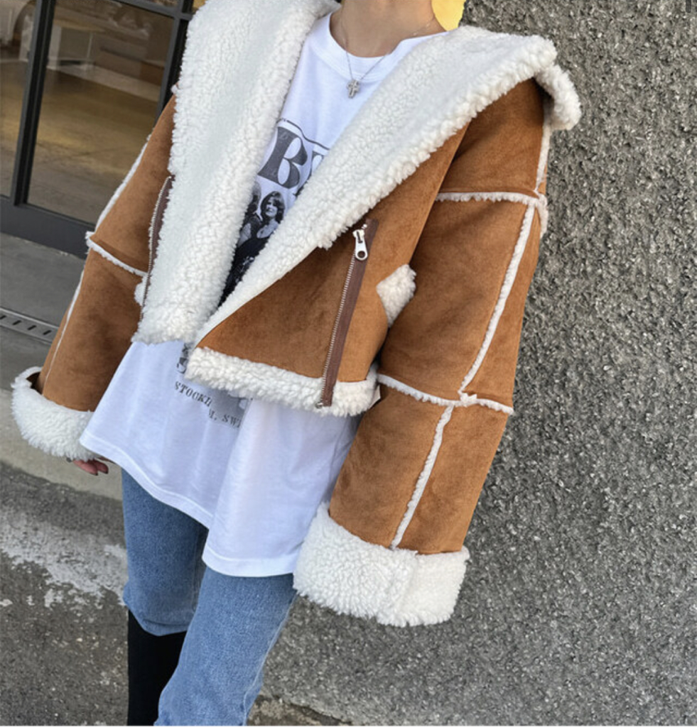 品名:미킹무스탕 ◎※☞颜色:먹색, 베이지 ◎※☞尺寸:FREE ◎※☞材质:聚酯 100% 翻译