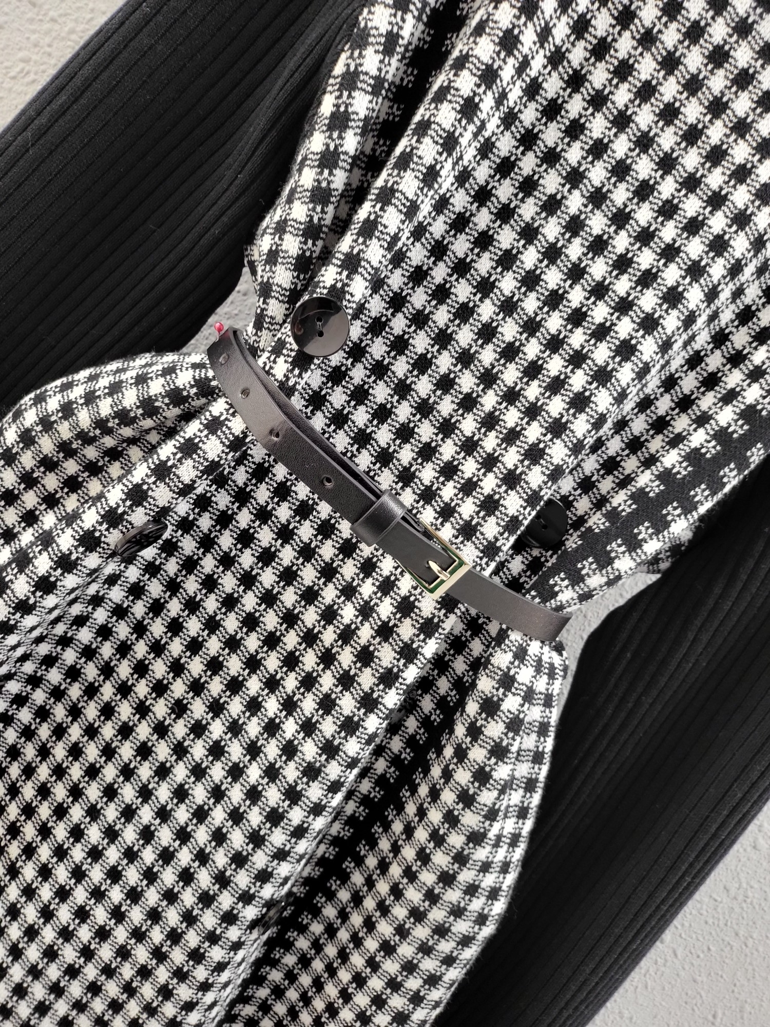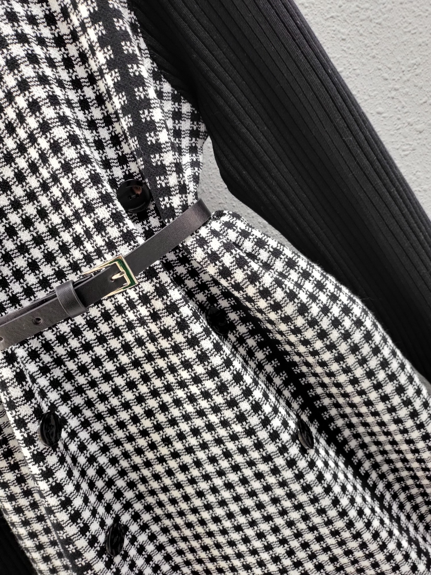 品名:더블 버튼 니트 나염 배색 원피스 ◎※☞颜色:블랙 ◎※☞尺寸:FREE ◎※☞材质:腈纶 50%,聚酯 50% 翻译