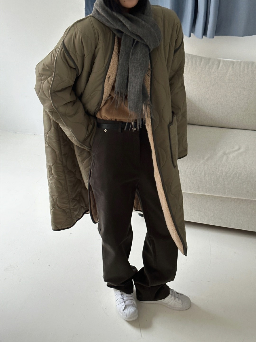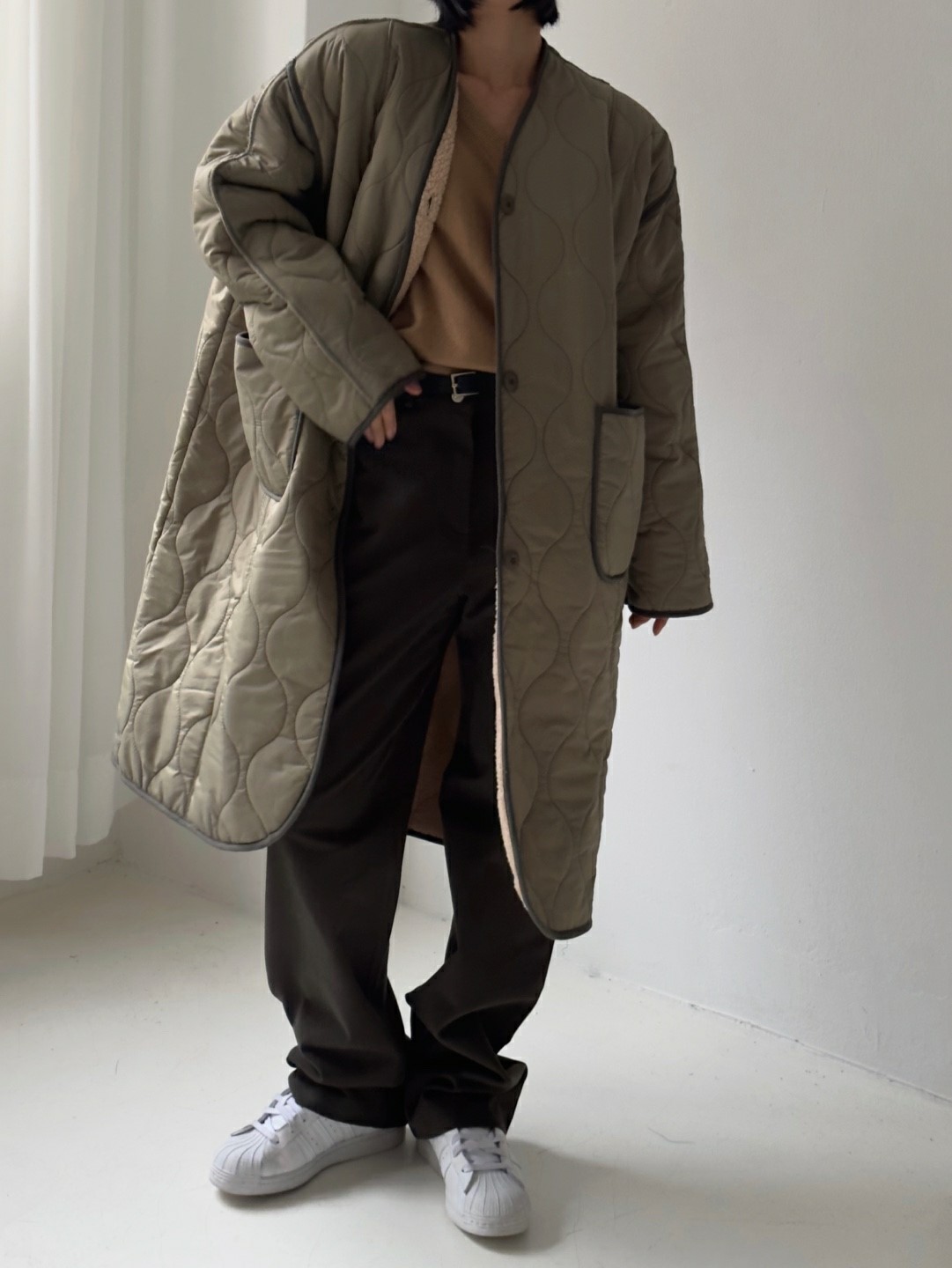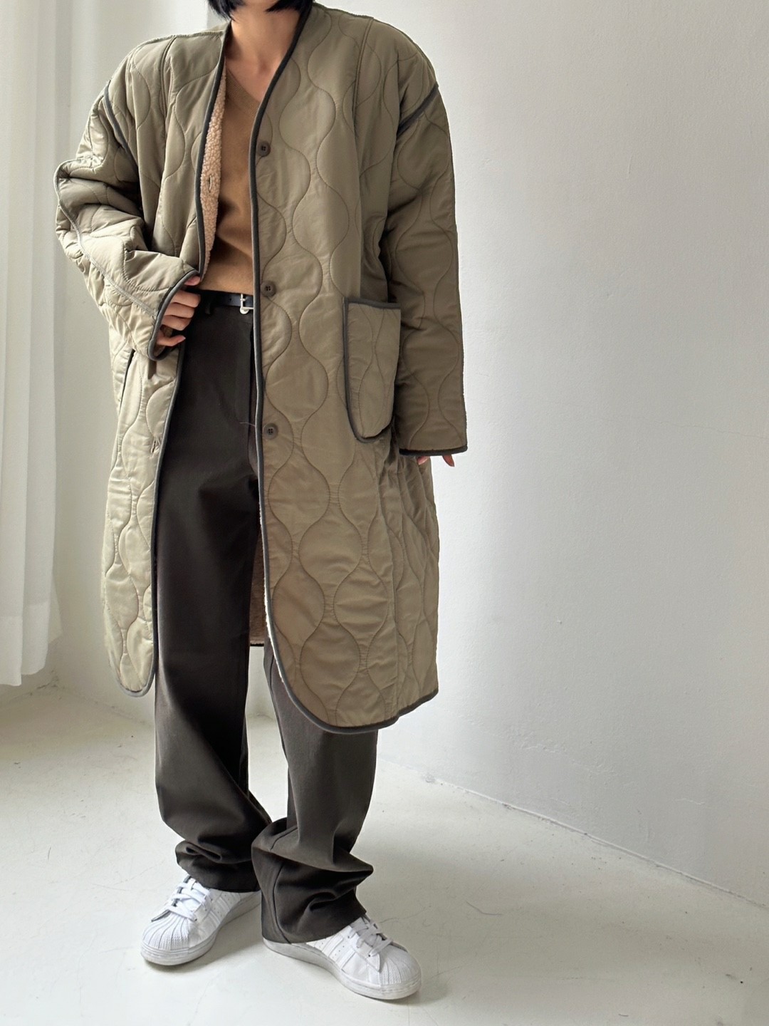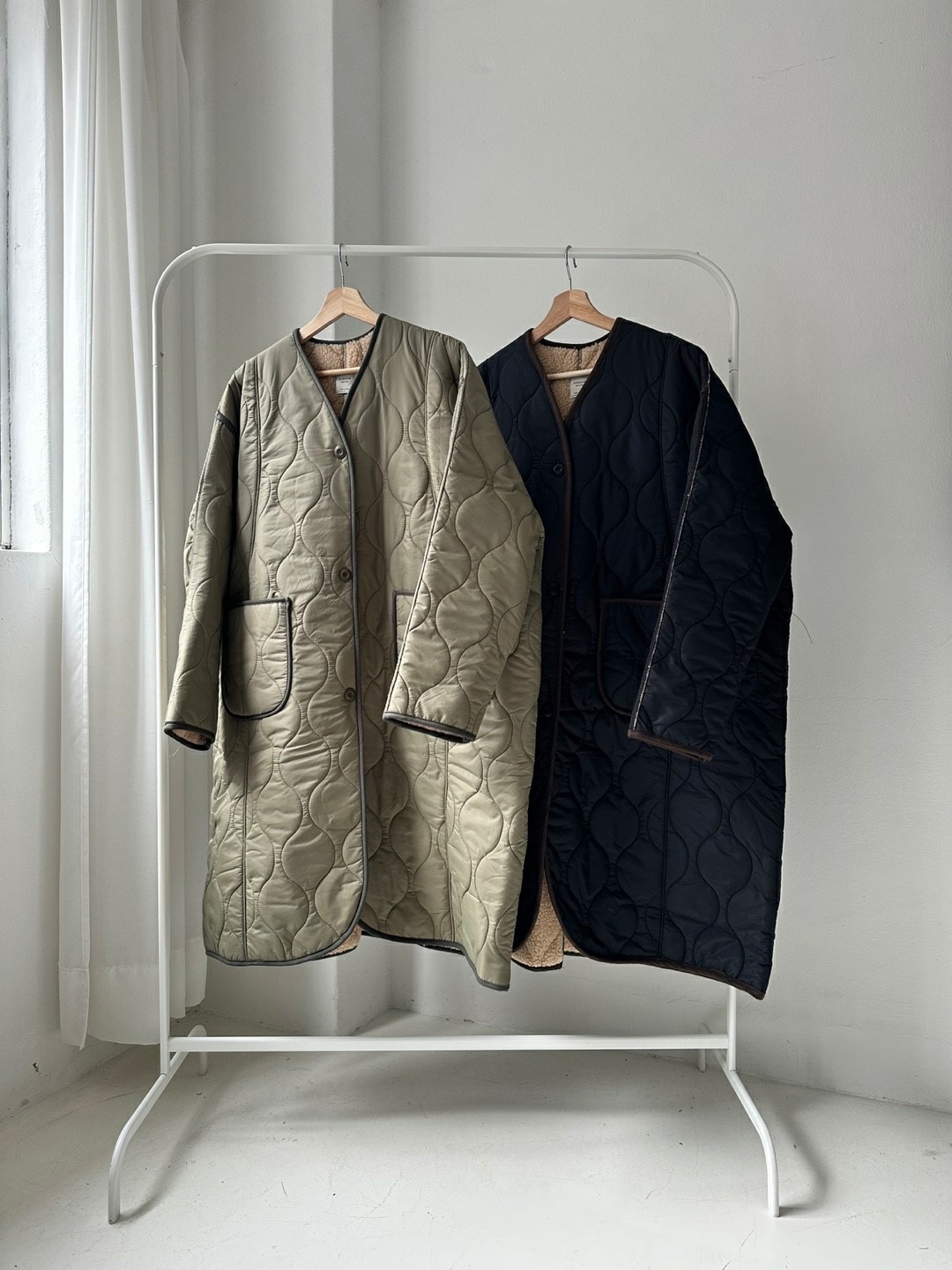 品名:퀼팅롱 코트 ◎※☞颜色:검정, 카키 ◎※☞尺寸:FREE ◎※☞材质:尼龙 100% 翻译