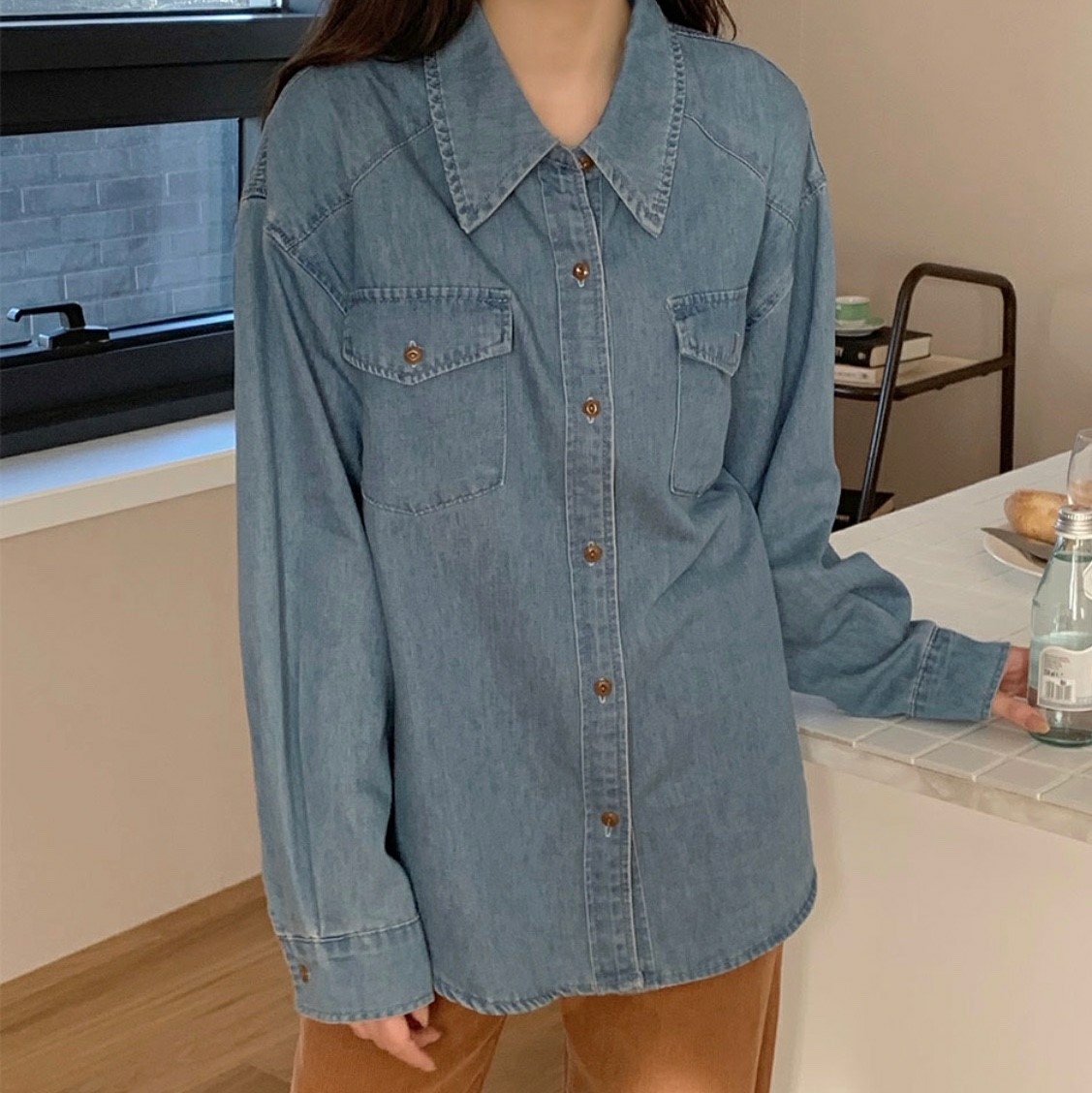 品名:트루청셔츠 ◎※☞颜色:연청, 진청 ◎※☞尺寸:FREE ◎※☞材质:聚酯 100% 翻译