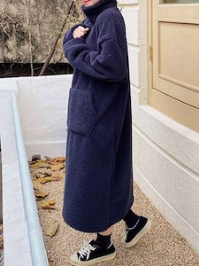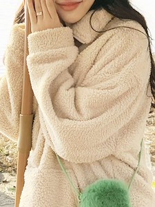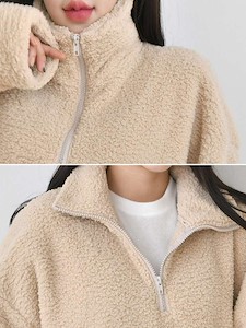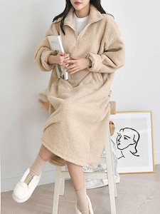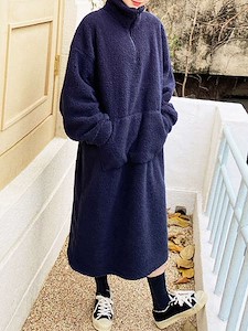도톰한 양털뽀글이 원단으로 제작된 따뜻한 폴라 반집업원피스예요