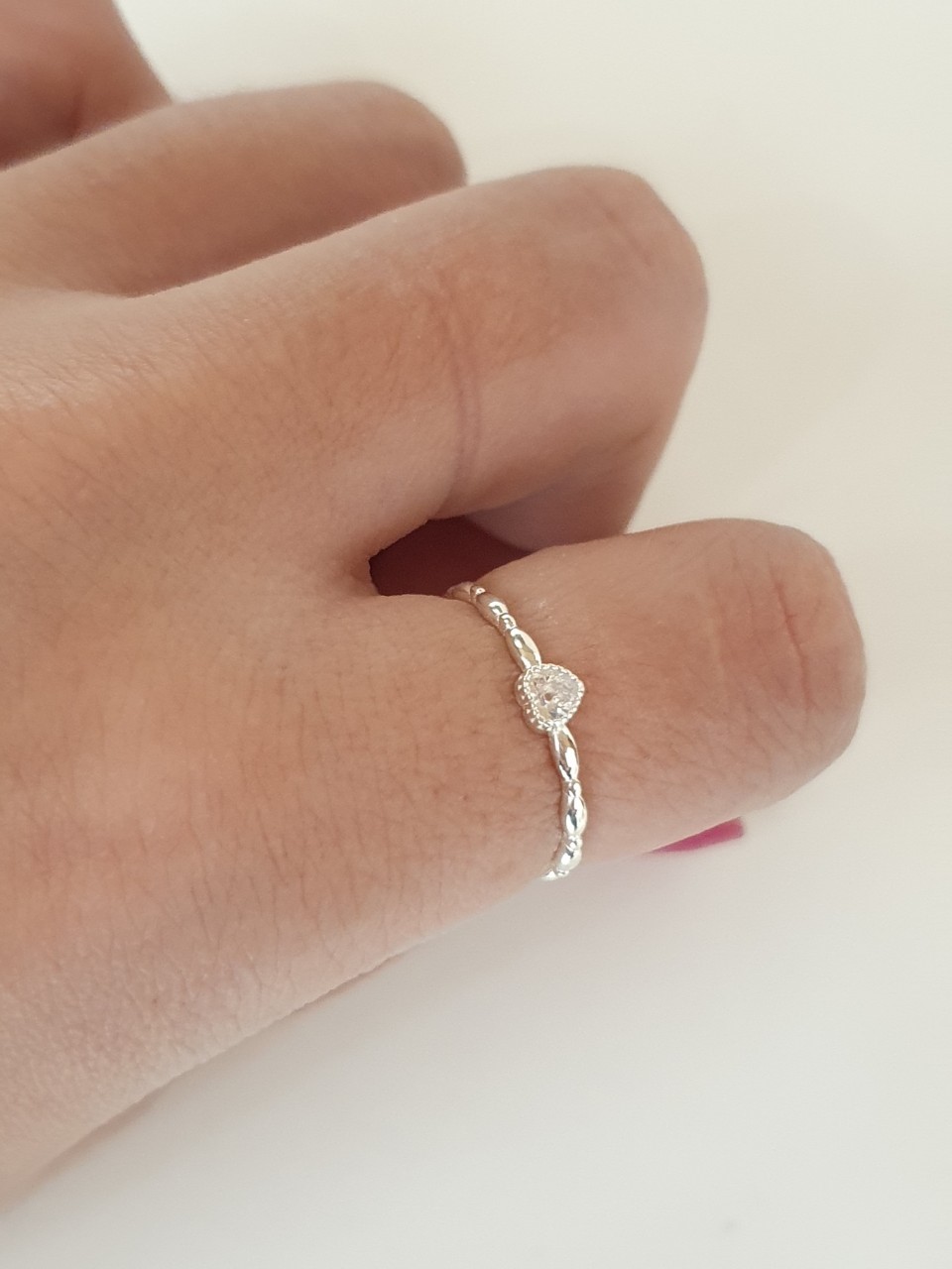 品名:은제품---반계란줄 작은 하트 큐빅반지