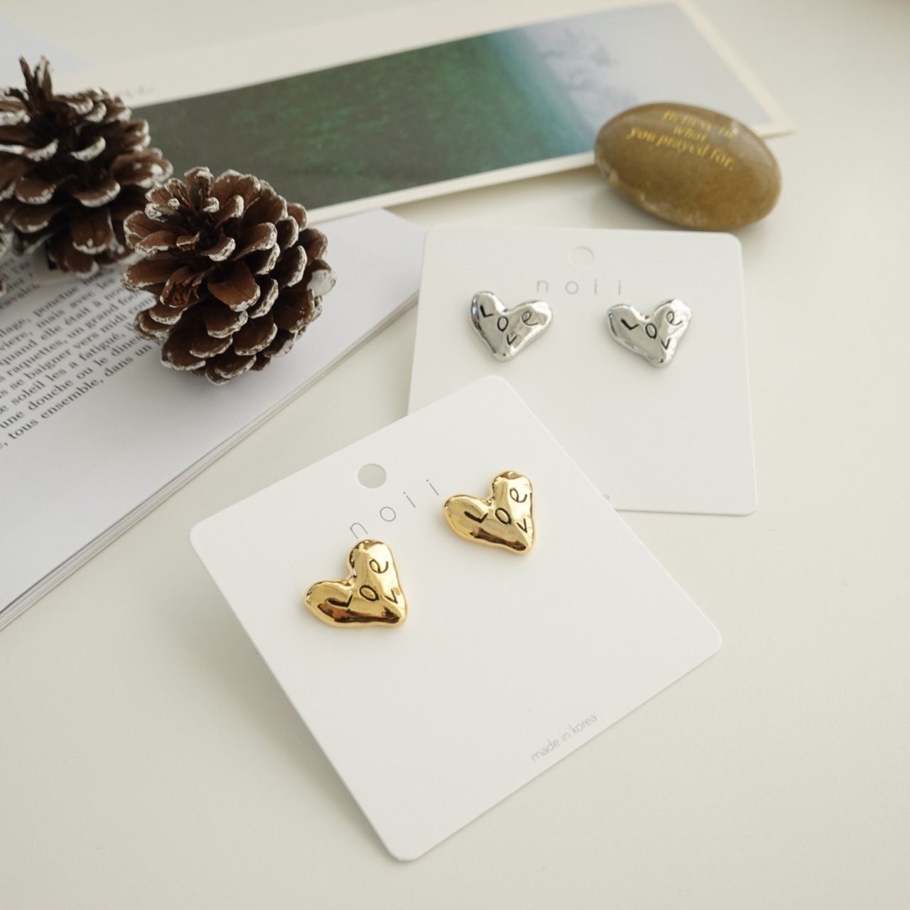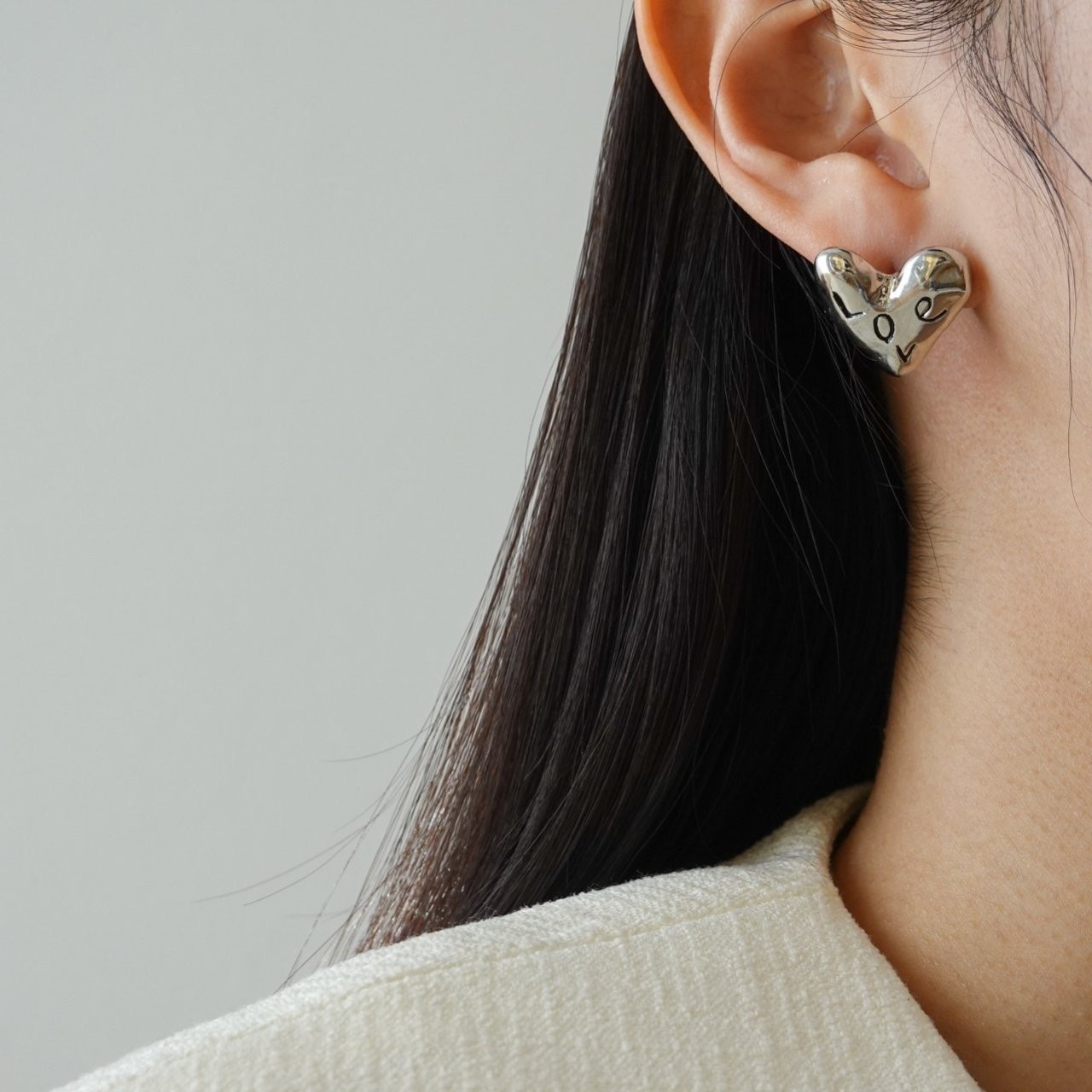 品名:E1918 LOVE 하트 귀걸이 (티탄침) ◎※☞颜色:골드, 실버 ◎※☞尺寸:FREE ◎※☞材质:镀金 0% 翻译