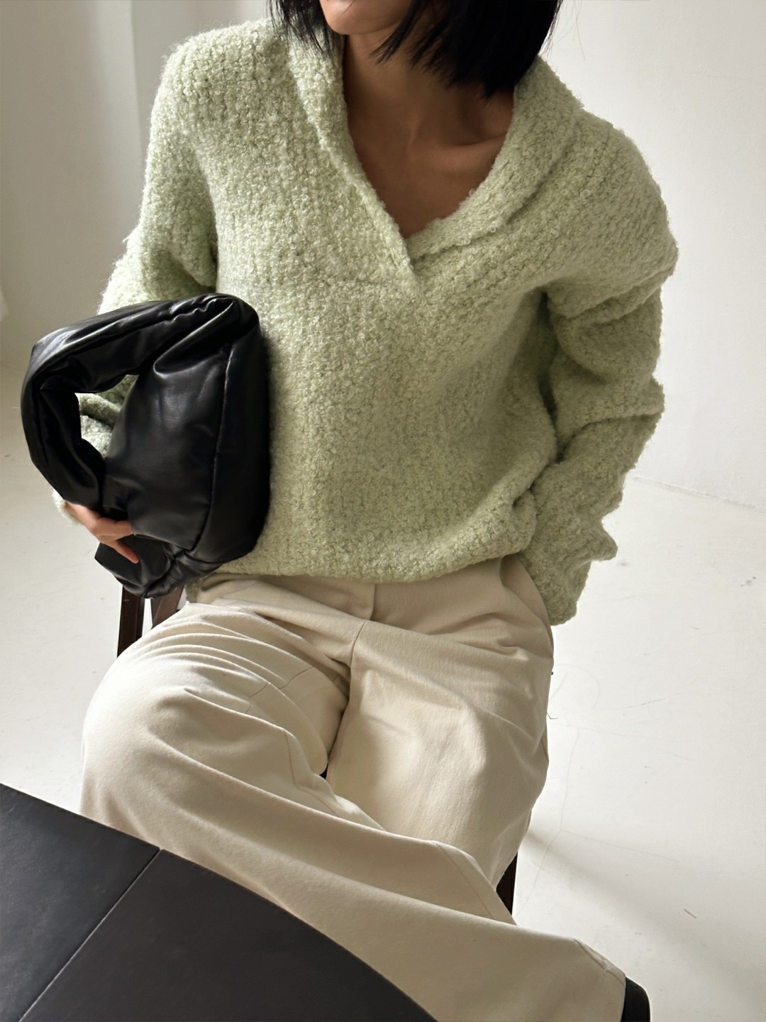 品名:부클게일 니트 ◎※☞颜色:그레이, 아이, 연두 ◎※☞尺寸:FREE ◎※☞材质:尼龙 20%,울부클 40%,羊毛 40% 翻译