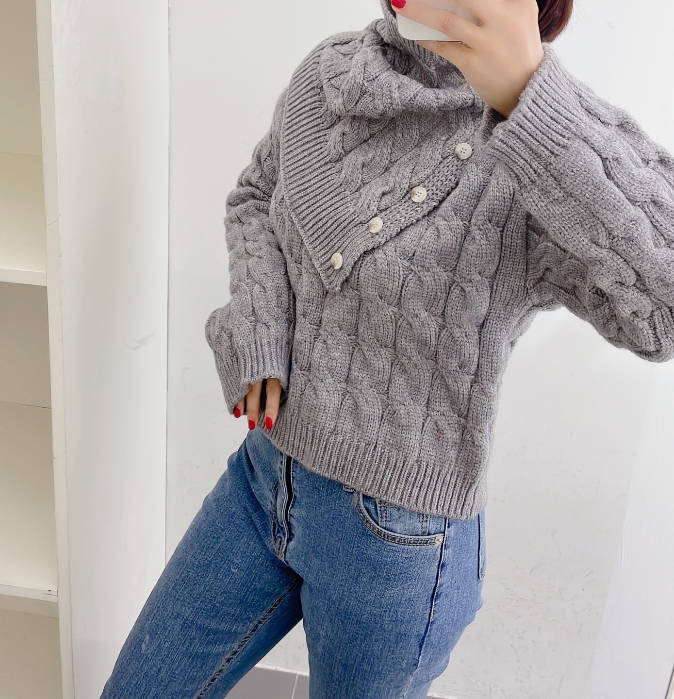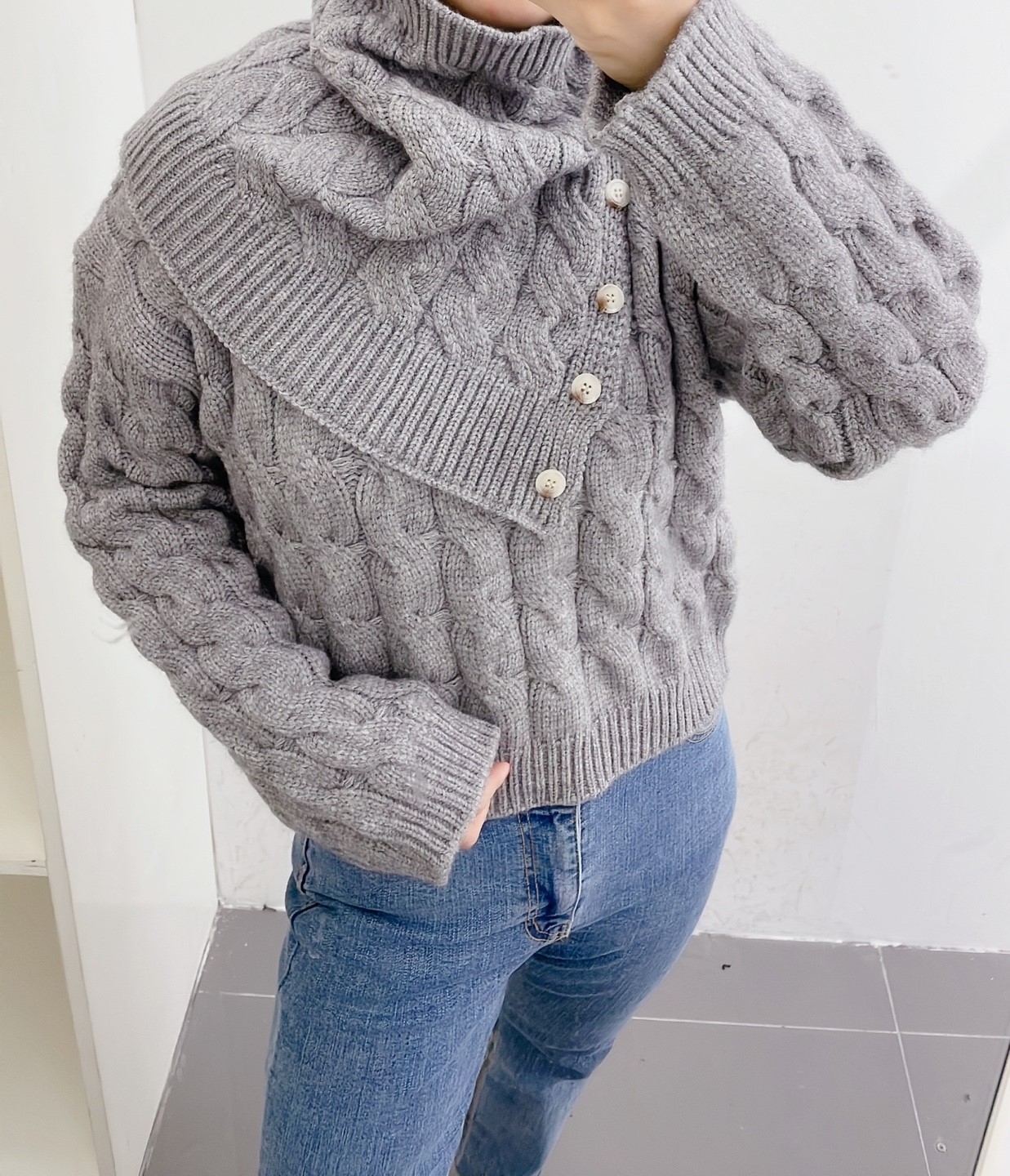 品名:넥워머셋트 #여성상의캐주얼시크섹시셋트머플러폴라유니크 ◎※☞颜色:그레이 ◎※☞尺寸:FREE ◎※☞材质:聚酯 100% 翻译