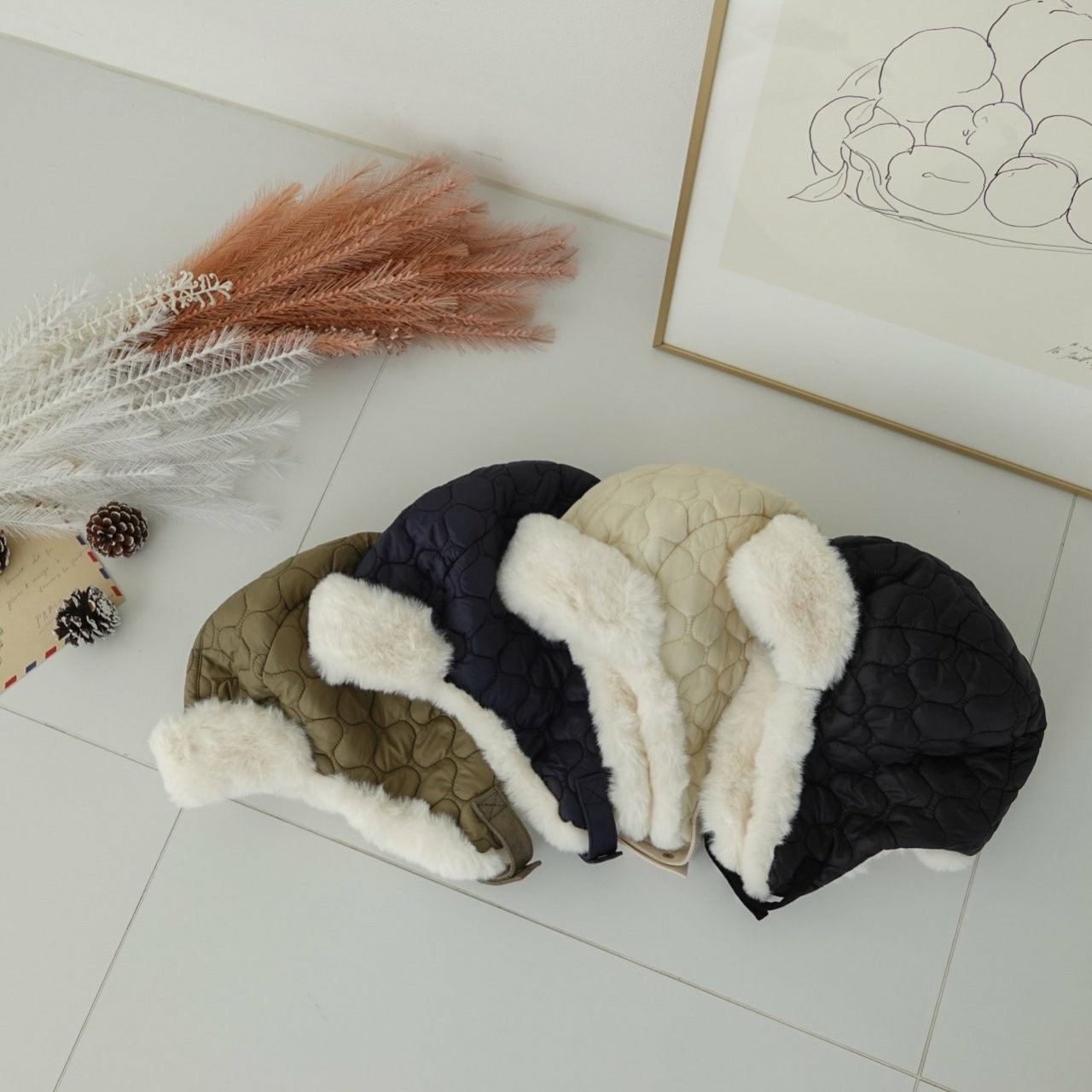 品名:BH950 누빔 귀도리캡 ◎※☞颜色:네이비, 블랙, 아이보리, 카키 ◎※☞尺寸:F ◎※☞材质:尼龙 50%,聚酯 50% 翻译